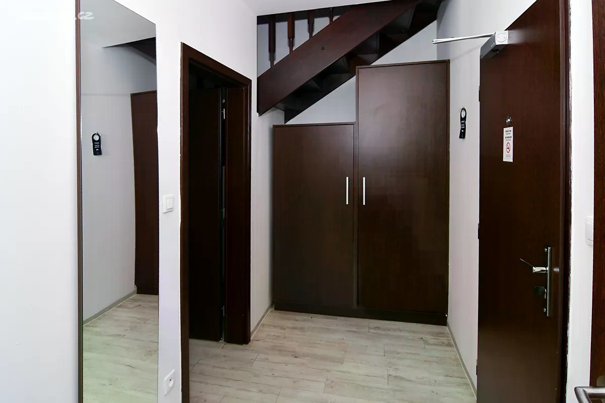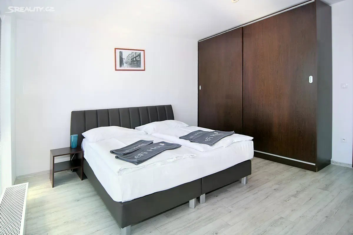 Kompletně zařízený byt. Pronájem na dobu od jednoho měsíce. Možnost pronájmu parkovacího místa za 1 700 Kč. Možnost pronájmu pračky za 500 Kč měsíčně. V případě pronájmu firmě, možnost odpočtu DPH. Pro studijní i pracovní pobyty nabízíme pronájem plně zařízeného bytu 2+kk včetně kuchyňské linky a elektrospotřebičů v hotelovém komplexu eFi Palace Hotel v centru Brna. V rámci uzavřeného hotelového komplexu Vám bude k dispozici také fitness, wellness, restaurace, venkovní bazén a parkování na hlídaném parkovišti. Pronájem bytu je možný již od jednoho měsíce až po dobu několika let. Nájemcem může být fyzická osoba či firma. Plátci daně mohou využít odečtu DPH. Odjíždíte na léto domů? Nevadí, byt uvolníte na letní období, ve kterém nebudete nic platit, a od podzimu se můžete znovu nastěhovat do stejného bytu. Byty 2+kk jsou o výměře od 98,2 do 100,4 m2 a nacházejí se ve 5. podlaží. Byt 3+kk má 121 m2. Budova je opatřena výtahem i schodištěm. Byt má vstupní chodbu vybavenou šatní skříní, celoplošným zrcadlem a pokojovým trezorem. Dále byt disponuje obývací částí s rozkládací sofa, moderní vybavenou kuchyňskou linkou s pracovní deskou, podstavnou lednicí indesit, vestavěnou mikrovlnou trouba s grilem a horkovzdušnou troubou, varnou konvicí a jídelní soupravou s nádobím pro 4 osoby. Pokoj je vybavený jídelním stolem se 4 židlemi, pracovním stolem s kancelářskou židlí a smart TV. Z pokoje je vstup na balkon. Ložnice je samostatná s luxusní postelí King Koil s možností uspořádání jako oddělené postele nebo manželská postel a velkou šatní skříní. Z ložnice je vstup na prostornou terasu s posezením a výhledem na Petrov a Špilberk. Koupelna v horní části je s rohovou vanou, umyvadlem, bidetem, wc a topným žebříkem.WiFi připojení se standardní rychlostí dat je již v ceně pronájmu. V ceně měsíčního nájmu je kalkulována paušálně i cena za odběr elektřiny, vody a topení. Cena měsíčního nájmu zahrnuje úklid společných prostor a pronájem povlečení s jejich výměnou v rozsahu jedenkrát měsíčně. Je požadovaná vratná kauce ve výši jednoho až dvou nájmů dle délky ubytování. Dlouhodobě ubytovaní nájemci mají v komplexu eFi Palace Hotelu zvýhodněný vstup do hotelového wellness&fitness centra. Nabídka je vhodná pro pracovní či studijní pobyty, a to zejména pro oborové specialisty, vytížené vedoucí pracovníky, obchodní zástupce, podnikatelé či studenty vysokých škol. Skvělá dostupnost do centra Brna za necelých 10 minut pěší chůze nebo dvě zastávky MHD. Prohlídky bytů možné kdykoli po předchozí domluvě. Neplatíte provizi za zprostředkování pronájmu!