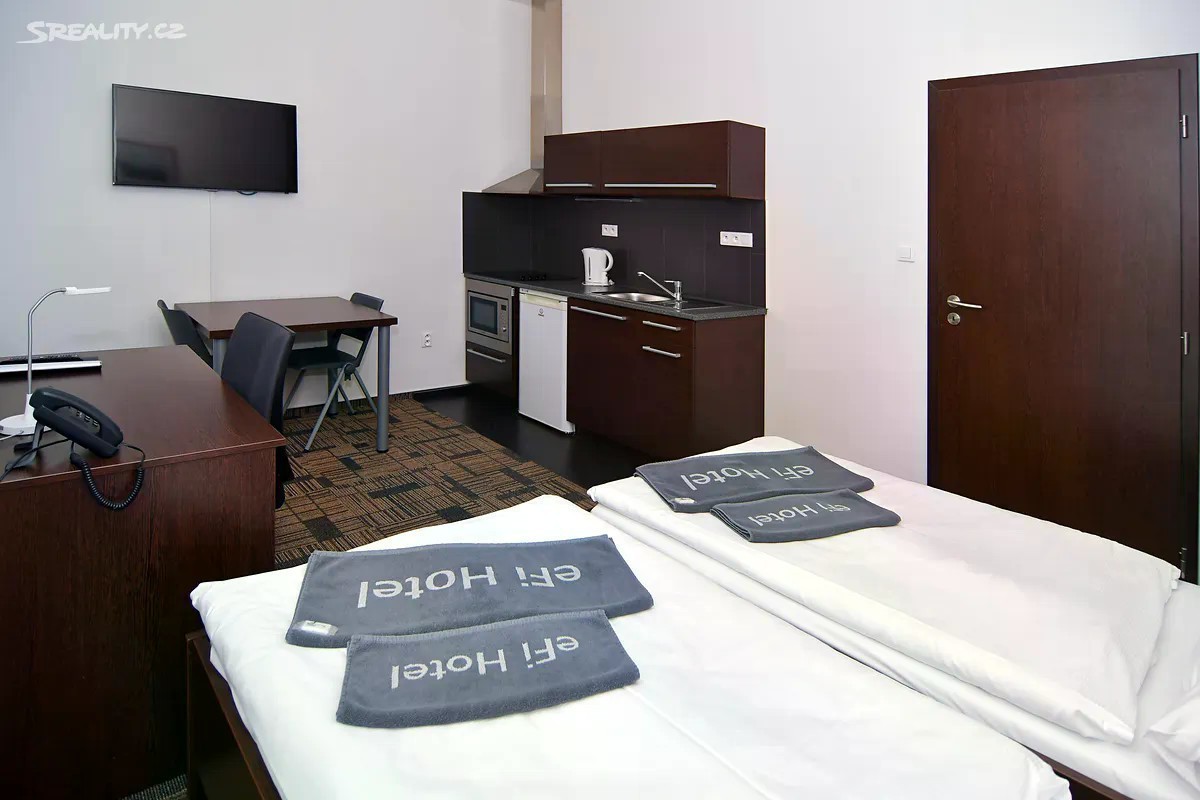 Kompletně zařízený byt. Pronájem na dobu od jednoho měsíce. Možnost pronájmu park. místa za 1 700 Kč měsíčně. Možnost pronájmu pračky za 500 Kč měsíčně. Pro studijní pobyty nabízíme pronájem plně zařízeného bytu 1+kk včetně kuchyňské linky a elektrospotřebičů v hotelovém komplexu eFi Palace Hotel v centru Brna. V rámci uzavřeného hotelového komplexu Vám bude k dispozici také fitness, wellness, restaurace, venkovní bazén a parkování na placeném parkovišti. Pronájem bytu je možný již od jednoho měsíce až po dobu jednoho roku. Odjíždíte na léto domů? Nevadí, byt uvolníte na letní období, ve kterém nebudete nic platit, a od podzimu se můžete znovu nastěhovat do stejného bytu. Byty 1+kk jsou o výměře od 24 do 25 m2 a nacházejí se ve 2. až 5. podlaží. Budova je opatřena výtahem i schodištěm. Byt má vstupní chodbu vybavenou vysokou šatní skříní s celoplošným zrcadlem a pokojovým trezorem. Dále byt disponuje obývací částí s komfortními postelemi 90 x 200 cm, moderní vybavenou kuchyňskou linkou s pracovní deskou, podstavnou lednicí indesit, vestavěnou mikrovlnou trouba s grilem a horkovzdušnou troubou, varnou konvicí a jídelní soupravou s nádobím pro 2 osoby. Pokoj je vybavený jídelním stolem se 2 židlemi, pracovním stolem s kancelářskou židlí a smart TV. Koupelna je s vanou, nebo se sprch. koutem, umyvadlem, WC a topným žebříkem. WiFi připojení se standardní rychlostí dat je již v ceně pronájmu. Cena měsíčního nájmu zahrnuje úklid společných prostor komplexu eFi Palace a pronájem povlečení s jejich výměnou v rozsahu jedenkrát měsíčně. Možnost pronájmu parkovacího stání v areálu komplexu je za 1 700 Kč měsíčně. Možnost pronájmu pračky na pokoji pak za 500 Kč měsíčně. Je požadovaná vratná kauce ve výši jednoho až dvou nájmů dle délky ubytování. Dlouhodobě ubytovaní nájemci mají v komplexu eFi Palace Hotelu zvýhodněný vstup do hotelového wellness&fitness centra. Nabídka je vhodná pro studenty vysokých škol. Nájem je možný pouze po doložení potvrzení o studiu na vysoké škole v Brně. Skvělá dostupnost do centra Brna za necelých 10 minut pěší chůze nebo dvě zastávky MHD. Prohlídky bytů možné kdykoli po předchozí domluvě. Neplatíte provizi za zprostředkování pronájmu!