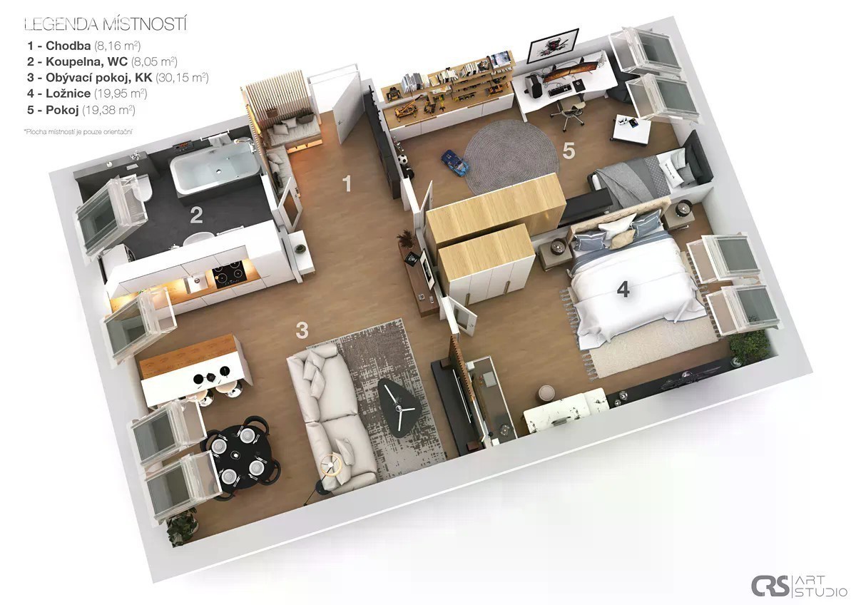 Pokud hledáte zcela nový byt s možností okamžitého nastěhování, mám pro vás skvělou příležitost. Nabízím podkrovní byt o celkové ploše 85,69 m², který se nachází ve zrekonstruovaném historickém domě na ulici Hlavní v Oslavanech. Byt je světlý, prostorný a připravený pro nové majitele. Hlavní obytný prostor tvoří obývací pokoj s kuchyňským koutem o výměře 30,15 m² - ideální místo pro společné chvíle i každodenní pohodlí. Kuchyňská linka není součástí prodeje, ale ráda pomohu s jejím návrhem a realizací podle vašich představ. Interiér oživují přiznané dřevěné trámy, které bytu dodávají jedinečný charakter, atmosféru a příjemný nádech historie. Soukromí a komfort zajišťují dva samostatné pokoje o velikostech 19,95 m² a 19,38 m² - vhodné jako ložnice, dětský pokoj nebo pracovna. Prostorná koupelna s vanou a WC nabízí pohodlí pro relaxaci i každodenní použití. K bytu náleží sklep o přibližné výměře cca 4 m², aktuálně ve výstavbě. Parkování je možné v okolí domu. Velkou výhodou je vlastní plynová kotelna v domě, zajišťující efektivní vytápění Majitelé bytů mají navíc k dispozici společný uzavřený dvorek, ideální pro posezení, sušení prádla nebo bezpečný prostor pro děti. Školy a školky v blízkosti Základní škola Oslavany (Hlavní 43) - poskytuje kompletní výuku 1. i 2. stupně, nachází se jen 300 m od bytu (pár minut pěšky) Mateřská škola Duha (Sportovní 12) - má 4 třídy (3 běžné + 1 speciální), kapacitu až 89 dětí; je vzdálena cca 250 m (~4 min chůze) Okolní vybavenost Potraviny - cca 80 m (2 min pěšky) pediatr, obvodní lékaři, zubaři, lékárna vše u autobusového nádraží - cca 240 m (3 min pěšky) V Oslavanech najdete i: Biotop u zámku.Přírodní koupací biotop se nachází cca 140 m od domu, v zámeckém parku. Nabízí koupání v čisté vodě, dětské hřiště, venkovní fitness a občerstvení - ideální pro relaxaci i rodinné chvíle. Permonium - zábavní park. Areál postavený v bývalém dolu Kukla je vzdálen přibližně 1,4 km (cca 15 min chůze). Nabízí lanové aktivity, tematické expozice, interaktivní hru i vzdělávání o hornictví a historii. Dojezdové vzdálenosti Brno: cca 25-30 km (autem nebo autobusem do 30 min) Rosice: cca 8 km (10 min autem) Proč právě tento byt? Nemusíte nic rekonstruovat - stačí se nastěhovat a začít si užívat nový domov. Ozvěte se mi pro více informací nebo domluvení prohlídky - těším se na vás!