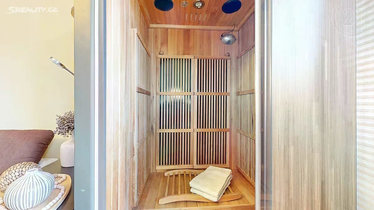 Exkluzivně nabízíme k prodeji komfortní prostorný byt dispozice 3+1 s celkovou výměrou 125,4 m², v atraktivní lokalitě městské části Brno - Štýřice, v ulici Vídeňská, s terasou, infrasaunou a podílovým vlastnictvím (1/11) společné zahrady. Vnitřní užitná plocha bytu: 104,3 m2. Plocha terasy: 12,2 m2. Plocha zděného sklepu: 8,9 m2. Výměra zahrady: 435 m2. Kompaktní dispozice bytu nabízí samostatné vstupy z prostorné haly do všech pokojů, šatny, rekonstruované koupelny a odděleného WC. V případě potřeby lze zpřístupnit nyní sádrokatronem zaslepené dveře mezi místnostmi 5 a 6 (viz 3D plánek ve fotografiích). Z kuchyně se pak vstupuje na terasu s nádherným výhledem na Petrov, Špilberk a stadion SK Moravská Slavia Brno. Vybavení obývacího pokoje saunou, samostatná šatna, prostorná terasa, velký sklep i podíl na společně užívané zahradě, umocňují komfort bydlení v této účelně řešené bytové jednotce. Dům s 2 roky novým výtahem se nachází v oblíbené lokalitě, přímo u zastávky MHD se skvělým spojením do centra města a okolních lokalit. V okolí je plná občanská vybavenost - obchody, restaurace a další služby. Přátelské sousedské vztahy přispívají k příjemnému a klidnému bydlení. 200 m od domu k dispozici volné městské podzemní garáže k pronájmu. V blízkosti dále nemocnice (250 m), prestižní spádová jazyková ZŠ Bakalka (480 m), mateřská škola Vídeňská (270 m), cyklostezka podél řeky Svratky (350 m) a vrch Červený kopec (800 m) se stejnojmennou národní přírodní památkou. D1 vzdálená jen 2,5 km, centrum města a hlavní nádraží pouhých 1,6 km.