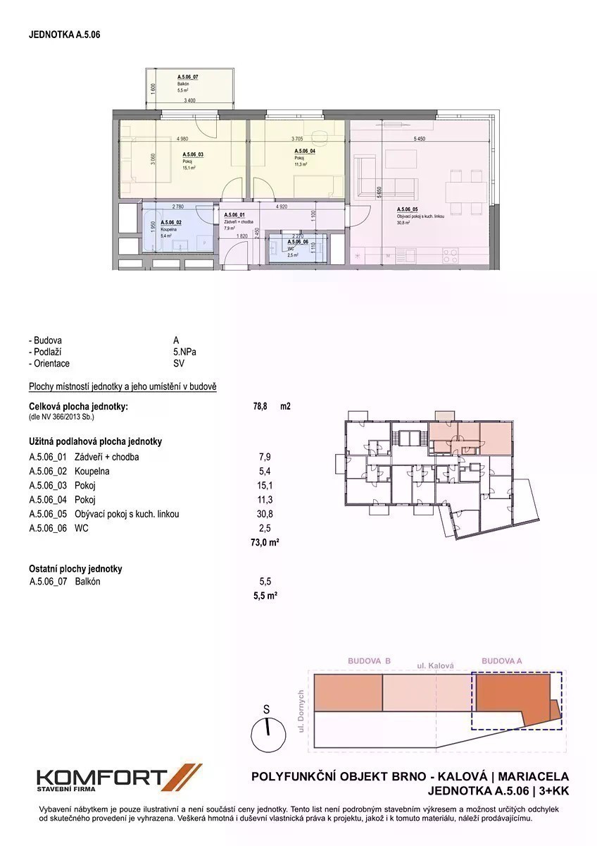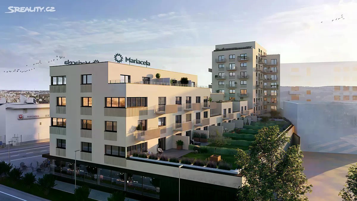 Rezidence Mariacela - Vaše komfortní bydlení poblíž nového Jižního centra Brna, v oblasti s dynamickým rozvojem, v bezprostřední blízkosti nového hlavního nádraží a parku Mariacela. Mariacela roste na nároží ulic Dornych a Kalová, Brno. Jedná se o moderní polyfunkční projekt, který spojuje inovativní technologie s pohodlím domova. Díky chytré domácnosti, rekuperaci vzduchu a chlazeným stropům nabízí zdravé a komfortní bydlení po celý rok. Mariacela znamená nejen nižší náklady, ale i dlouhodobě udržitelné bydlení s energetickým štítkem A. Celkem 94 exkluzivních jednotek různých dispozic s balkonem, lodžií či terasou, umístěných v 1.až 9.nadzemním podlaží. Horní patra umožňují krásný výhled na brněnské dominanty. Naopak v přízemí domu je navženo 7 komerčních prostor určených pro obchody či služby. V podzemních patrech, kam vás pohodlně doveze výtah, se pak nachází: - GARÁŽOVÁ STÁNÍ v ceně od 800.000,-Kč, pohodlný vjezd/výjezd zajišťují automatická sekční garážová vrata. V hromadné garáži - příprava na wallbox (el.nabíjení aut) - SKLEPY různých velikostí přístupné i přímo z garážových stání. Výběr sklepu je na kupujícím, cena sklepu není součástí ceny jednotky. Výstavba Rezidence Mariacela zahájena v I.Q/2025, termín dokončení ve IV.Q/2027. Rádi Vám poskytneme podrobnější informace nebo se podívejte na webové stránky projektu rezidencemariacela.