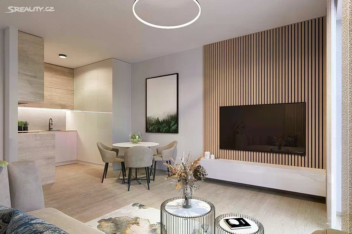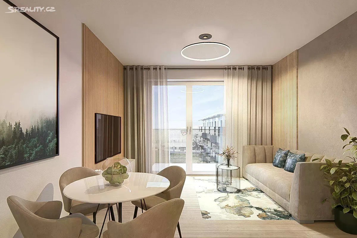 Prodej bytové jednotky 3+kk v novém projektu "Rezidence Dios", Modřice Náš developerský projekt nabízí výstavbu 4 bytových objektů v moderně - novodobém provedení a společně tvořící nádherný poloveřejný vnitroblok. Nabízíme Vám největší bytovou jednotku v projektu (A1.01) o dispozici 3+kk a CP 71,36 m2 se bude nacházet ve 1.NP/6 bytového domu "A" a bude disponovat terasou 55,55 m2 a zahrádkou 143,77 m2 s orientací na JV/JZ. K bytu je nutno dokoupit i vnitřní parkovacího stání v suterénu pod domem. Možno přikoupit až 2 tato stání. Samotná lokalita města Modřic nabízí širokou škálu pracovních možností a veškerou potřebnou občanskou vybavenost a výbornou dojezdnost díky dálnici D1 a D2. V blízkosti se nachází obchodní centrum Olympia. Také zde v docházkové vzdálenosti nalezneme školu, školku, lékaře a autobusovou (č. 510) nebo tramvajovou zastávku (č. 2), ale především vlakové nádraží, kdy první vlak odjíždí již v 4:42 a v 4:50 jste na Hlavním vlakovém nádraží v Brně. Spoje jezdí co každou čtvrthodinku do pozdních 22:43. Dokončení projektu je naplánováno na konec roku 2026 a s tím se pojí i skvělý model financování, kdy při podpisu SBKS klient skládá 15% a zbylých 85% po kolaudaci. Pokud by Vás nabídka tohoto či jakéhokoliv jiného bytu v tomto projektu zaujala obraťte se na makléře či webové stránky projektu. Děláme moderní bydlení dostupnější.