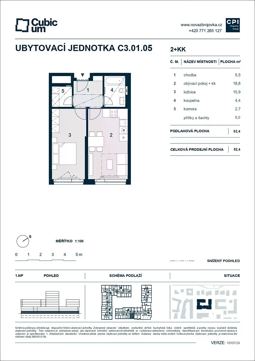 Očekávaný prodej bytů v nově vznikající čtvrti Nová Zbrojovka v brněnských Židenicích byl spuštěn. Nabízíme vám jednotky v jedné z prvních dvou realizovaných budov, rezidenci Cubicum. V dispozici 2+kk nabízí rezidence Cubicum jednotku v s celkovou 1.NP prodejní plochou 52,4 m². Samozřejmostí jsou velkorysé úložné prostory včetně komory a prostorný sklep v ceně. Rezidence dopřeje klidný zelený vnitroblok s hřištěm pro děti i dostatkem prostoru pro relaxaci. Rezidence Cubicum je umístěná kousek od Vojenské nemocnice ve strategické blízkosti budoucího náměstí, ale zároveň také nábřeží. Na 6 až 10 podlažích je k dispozici 235 bytových jednotek od účelově řešených žádaných dispozic 1+kk až 2+kk ideálních jako investiční byty k pronájmu až po nadstandardní velkoplošné byty 4+kk s terasami s výhledem na Brno. Jednotky přináší vysoký uživatelský komfort, kterému dominují velkoformátová okna, chytré řízení domácnosti systémem Loxone a vysoká kvalita zařizovacích předmětů i použitých materiálů. V základní ceně můžete vybírat hned ze 4 variant interiérového designu. Využijte příležitost být součástí ojedinělého procesu komplexního vytváření nové městské čtvrti - moderní, propojené a živé, navržené tak, aby uspokojila veškeré požadavky na komfortní a udržitelný život ve 21. století. Bytový koncept Nové Zbrojovky má na prvním místě kvalitu výstavby i interiérového provedení, promyšlené dispozice a klade důraz na efektivní využití každého m². Nabízí vyšší standard nejen jednotek samotných, ale také celého objektu včetně provedení okolí. Rezidence je navržena jako energeticky velmi úsporná (PENB B). To zaručí nejen snížení nákladů za energie, ale také možnost výhodnějšího financování hypoték. Výstavba byla zahájena na podzim roku 2024 a nastěhování obyvatel je předpokládáno počátkem roku 2027. Prodej je zajišťován napřímo bez zprostředkovatelů, tedy dalších nákladů.