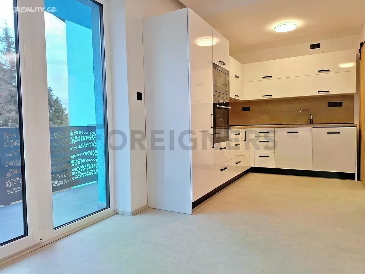 Přijďte se podívat na tento zcela nový, částečně zařízený byt o dispozici 3+kk o velikosti 96 m2 a terasou o velikosti 20 m2, který je situován v okrajové a klidné části Olomouc, v právě dokončené budově v Přerovské ulici. Dejte si sklenku vína při západu letního slunce s úžasným výhledem do přírody! • nadstandardní byt mimo centrum Olomouce, v klidné části města • v těsné blízkosti nákupního domu Olympia, autobusové/vlakové nádraží • výborná dostupnost do města i na dálnici Byt se skládá ze vstupní chodby, kuchyňským koutem v prostorném obývacím pokoji s krásným výhledem a ložnicí. Samozřejmostí je koupelna a samostatný záchod. V bytě je také technická místnost, kterou lze využít například jako šatnu. Byt se pronajímá částečně zařízený s vybavenou kuchyní, tj. lednicí s mrazákem, myčkou, vestavěnou elektrickou troubou, mikrovlnkou, sklokeramickou troubou, digestoří. V koupelně je sprchový kout, umyvadlo a elektrický topný žebřík. Byt se nachází v 2NP nového cihlového bytového domu o celkové ploše 88 m2 včetně balkonu. Měsíční nájemné činí 25 000 Kč včetně parkovacího stání. Služby činí 5 000 Kč za vodu, elektřinu, topení a internet. Vratná kauce činí 50 000 Kč. Minimální doba nájmu je 1 rok s možností dalšího prodloužení.