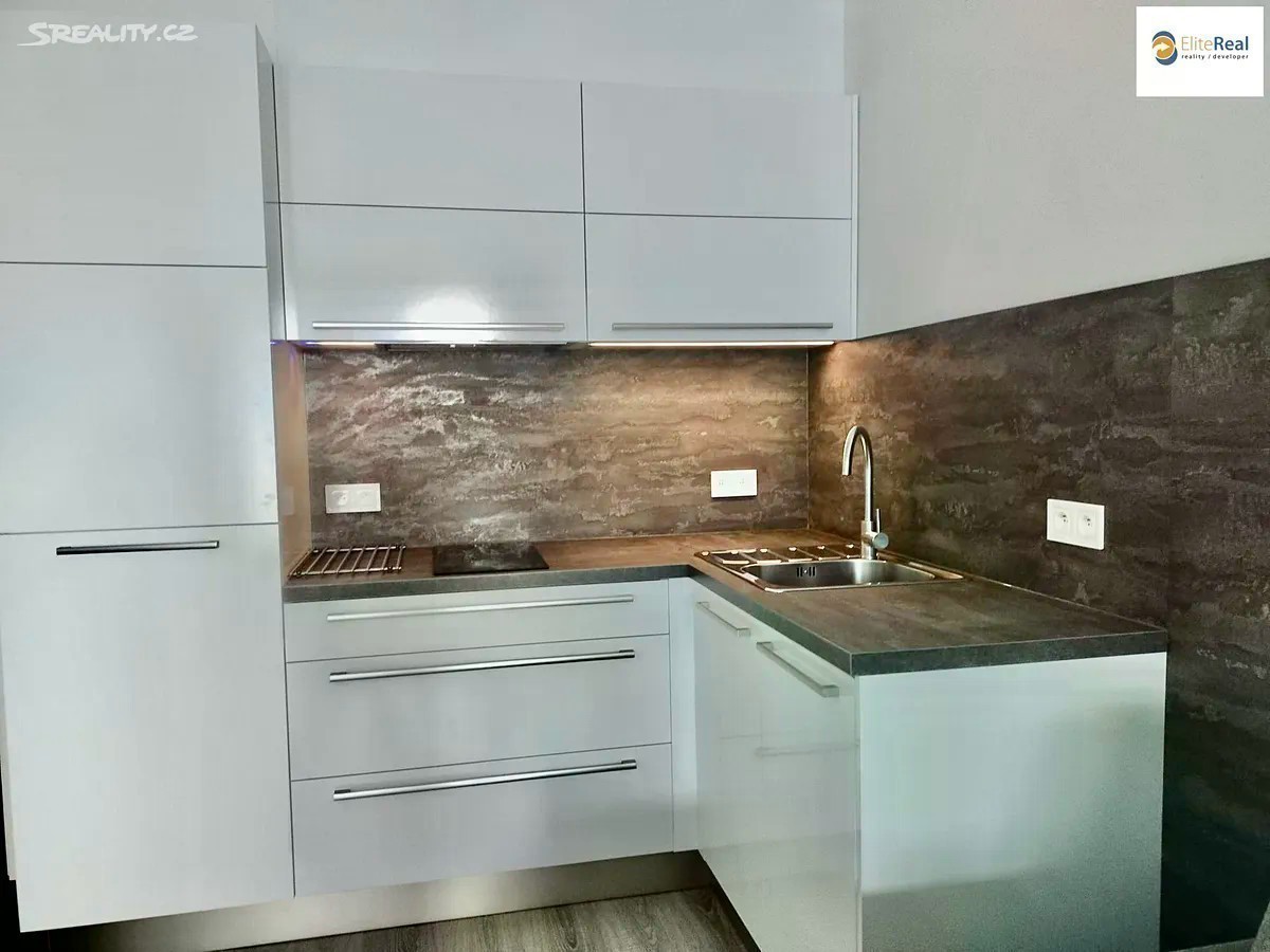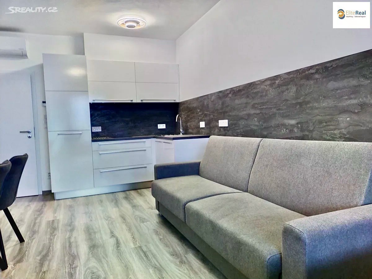 Elite real service s.r.o. Vám v zastoupení majitele nabízí podnájem nového vybaveného exluzivního bytu 1+kk s garážovým stáním v novostavbě na ul. Frištenského, Olomouc - Rezidence Nová Okružní. Byt je orientovaný na východ. Plocha jednotky 36m2 + plocha terasy 5m2. Dispozičně je byt moderně řešen - kuchyňský kout dohromady s obývacím pokojem, z obývacího pokoje přístup francouzským oknem na terasu, z chodby přístup do obývacího pokoje, koupelny s WC a šatny. Koupelna společně s WC: závěsné wc systém Geberit, umyvadlo, skříňka pod umyvadlem, zrcadlo s osvětlením, baterie, otopný žebřík, sprchový kout. Vybavení bytu: kuchyňská linka včetně spotřebičů - indukční varná deska (2 plotýnky), elektrická trouba, mikrovlnná trouba, lednice s mrazákem, nerezový dřez, páková baterie, stůl, jídelní židle, moderní manželská postel s LED osvětlením (s možností rozdělení), stolek pod televizi, velká TV s plochou obrazovkou s LED podsvícením. V šatně pračka a sušička, úložný policový systém, v chodbě věšáková stěna s botníkem. Podlahy: v pokoji a chodbě plovoucí podlaha, v koupelně a šatně dlažba. Podlahové topení, klimatizace. Kvalitní okna, záclony, závěsy, vnitřní žaluzie. Podmínkou je pronájem garážového stání v 1.PP domu za poplatek 1.500,-Kč/měsíc. Novostavba je situována v části Olomouc - Neředín, v těsné blízkosti supermarketu Kaufland. Vratná kauce ve výši 27.800,-Kč. Měsíční inkasní poplatky ve výši 2.389,-Kč zahrnují: vodné/stočné, teplo, teplou vodu, úklid společných prostor, výtah, osvětlení společných prostor, pojištění bytového domu, výbor SVJ, správa domu, fond oprav + garážové stání 290,-Kč + elektrická energie 1.000,-Kč. Omezení pro nájemníky: Ne - zvířata, zákaz kouření v bytě. (B207, V2). V blízkosti bytového domu se nachází tramvajová zastávka "Nová Ulice", autobusová zastávka "Tabulový vrch", mateřské školy (ul. Čajkovského, Jílová), základní školy (ul. Čajkovského, Stupkova), zdravotnické zařízení (Fakultní nemocnice Olomouc) a další. Rychlý příjezd na dálnici. Největší nabídku novostaveb - nových bytů, byty na prodej, byty k pronájmu a informace o naši dceřinné společnosti - naleznete na našich webových stránkách.