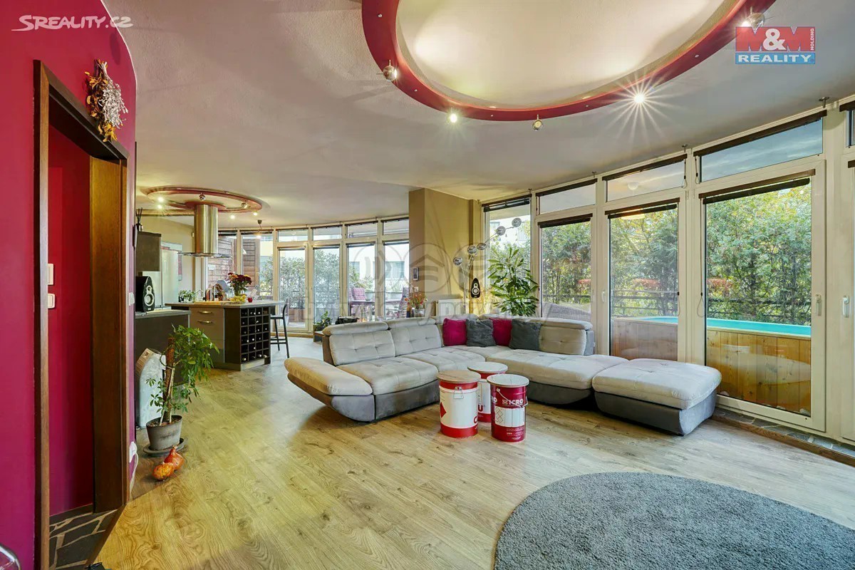 Nabízíme k prodeji jedinečný byt 2+kk o ploše 130 m² (včetně terasy 35 m²), který se nachází ve zvýšeném přízemí bezbariérového domu s výtahem. Byt je skvělou volbou pro jednotlivce, páry nebo jako reprezentační byt. Hlavní obytná část je spojena s kuchyní, vybavenou varným ostrůvkem, americkou lednicí, myčkou a dalšími spotřebiči. V ložnici najdete pracovní kout a samostatnou šatnu. Prostorná koupelna nabízí WC s bidetovou sprškou, rohovou vanu. Veškerý nábytek v bytě je dělaný na míru od truhláře. Na terasu, obklopenou tújemi pro větší soukromí, je přístup z celého bytu. Nachází se zde gril, relaxační zóna a vyhřívaný bazének. K bytu náleží garážové stání, sklep a chytrá domácnost se systémem ovládání na dálku. Veškerá občanská vybavenost v docházkové vzdálenosti. Velice doporučuji prohlídku.