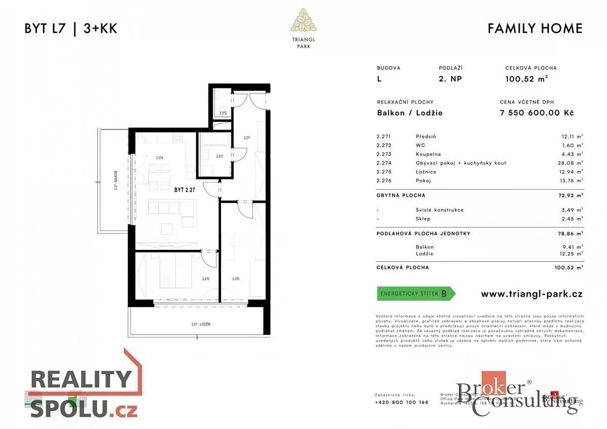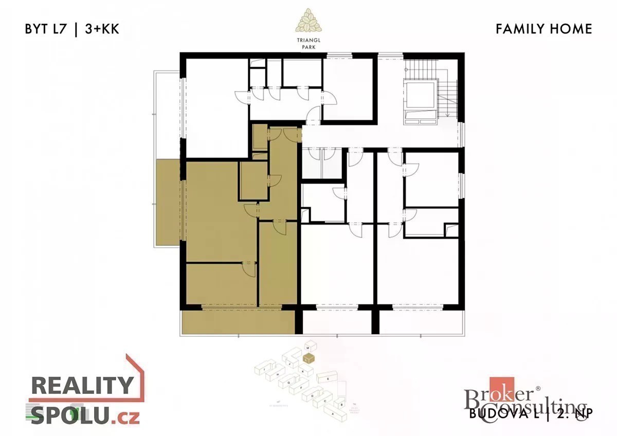 Nově spuštěn prodej 3.etapy projektu. Exkluzivní varianta financování Nyní stačí uhradit pouze 20 % kupní ceny a zbylou část hradíte až po kolaudaci bytu. Nabízíme Vám ke koupi byt M7 o dispozici 3+kk a výměře bytu 72,92 m2. Bytová jednotka ve stylu Family Home je umístěna do 2.NP z celkových 7NP. K bytu náleží úložná kóje o ploše 2,45 m2 + balkon a lodžie o celkové ploše 21,66 m2. Celková plocha bytu poté činí 100,52 m2. V nabídce máme i další byty o dispozicích 1+kk, 2+kk, 3+kk a 4+kk. Pro jejich nabídku nás stačí kontaktovat. Vyšší standard bydlení - vnitřní strojní sádrové omítky s gletovaným povrchem - vinylové podlahy nebo venkovní žaluzie (v závislosti na vybraném bytu) Projekt Triangl Park Plzeň nyní startuje prodej 3.etapy. Představuje unikátní koncept rezidenčního bydlení v Jižní části Plzně - Bory a nabízí velkou škálu bytů o dispozici 1+kk, 2+kk, 3+kk a 4+kk s možností výběru ze třech standardů dle stylu bydlení: Garden Suite, Family Home, Penthouse Lodge. V případě dotazu či zájmu o schůzku nás neváhejte kontaktovat na nonstop realitní lince.