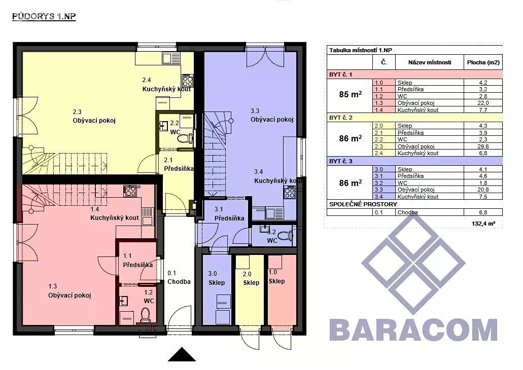 V oblíbené lokalitě v Tachově, v ul. K Lesíku na okraji města, zahajujeme výstavbu rodinných domů o třech bytových jednotkách. Moderní mezonetové byty 3+kk s výhledem na město. Byty se nachází v rodinném domě - energetická třída velmi úsporná - B. Všechny byty o velikosti 90 m2 podlahové plochy, splňují tak komfort i pro náročnou klientelu. Při vstupu do bytů se nachází vstupní prostorná chodba, toaleta s umyvadlem a přípojkou na pračku, dále obývací prostor s kuchyňským koutem. Francouzským oknem v obývacím pokoji vstoupíte na vlastní zahradu o velikosti od 114 m2. Obývací pokoj je propojen betonovým schodištěm s 2NP, kde se nachází ložnice, dětský pokoj, koupelna s vanou a půdní prostor. Vytápění je zajištěno tepelným čerpadlem, díky kterému se sníží náklady na energie až o třetinu oproti jiným zdrojů vytápění. Tepelné čerpadlo pro každou byt. jednotku, je umístěno vždy ve sklepní kóji. V kóji je úložný skladovací prostor pro např. jízdní kola, sekačku - věci, které nepotřebujete mít denně na očích. Parkování pro 1 automobil je zajištěno na pozemku. Bytová jednotka je vybavena venkovním nezámrzným kohoutem na vodu, zásuvkou na elektřinu a kabelem na venkovní osvětlení. V ceně bytu je zahrnuto: podlahové vytápění v 1NP i ve 2NP, interiérové dveře, podlahy, obklady, dlažba a sanitární vybavení - vše dle výběru nového majitele v našich klientských centrech. V ceně není zahrnuto oplocení pozemku a kuchyňská linka. S financováním Vám rádi pomohou naši specialisté.