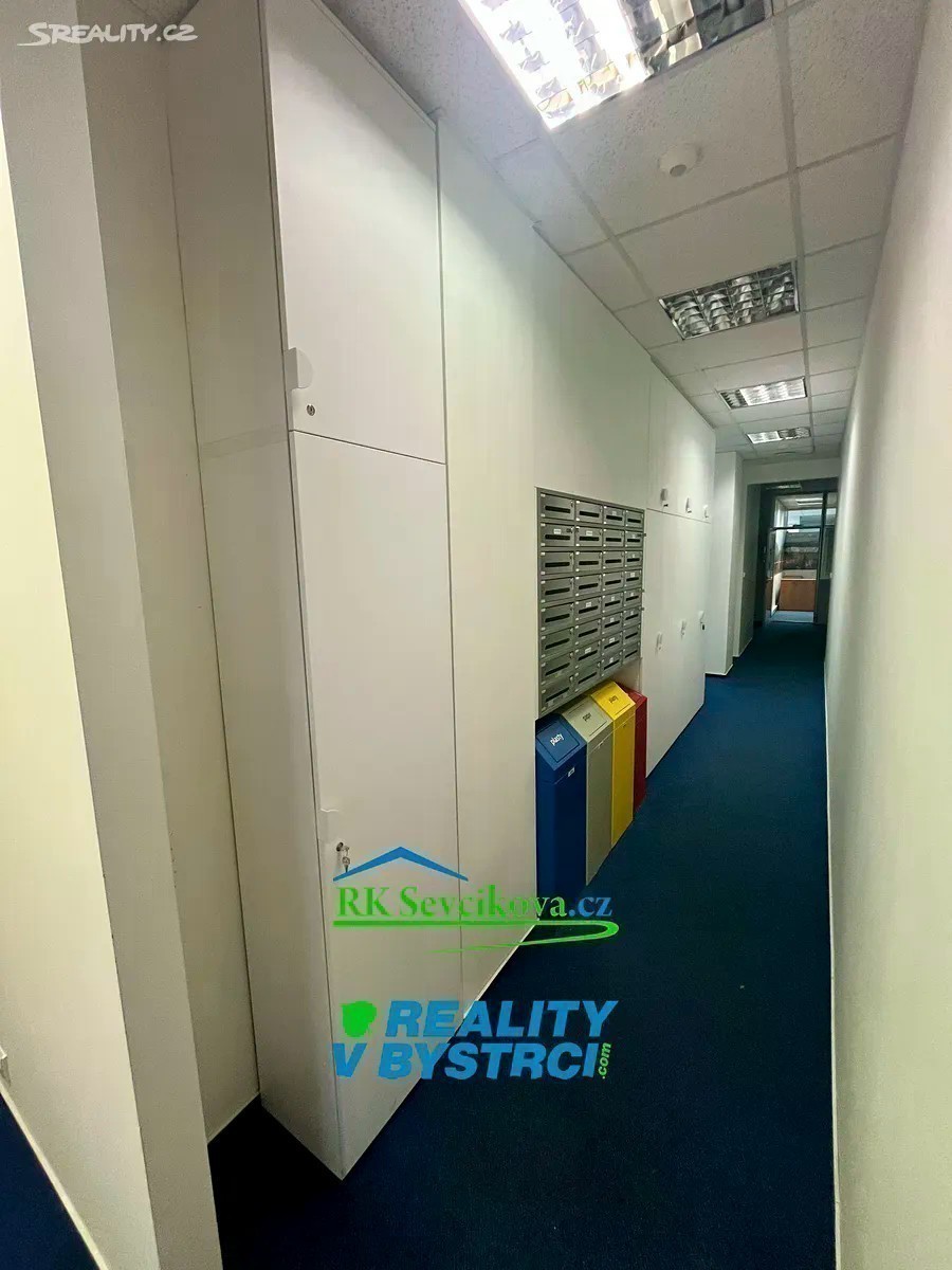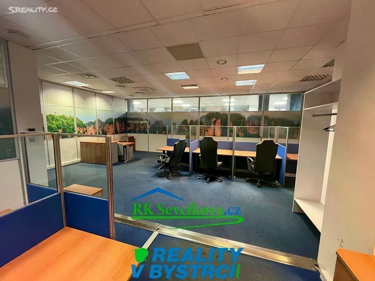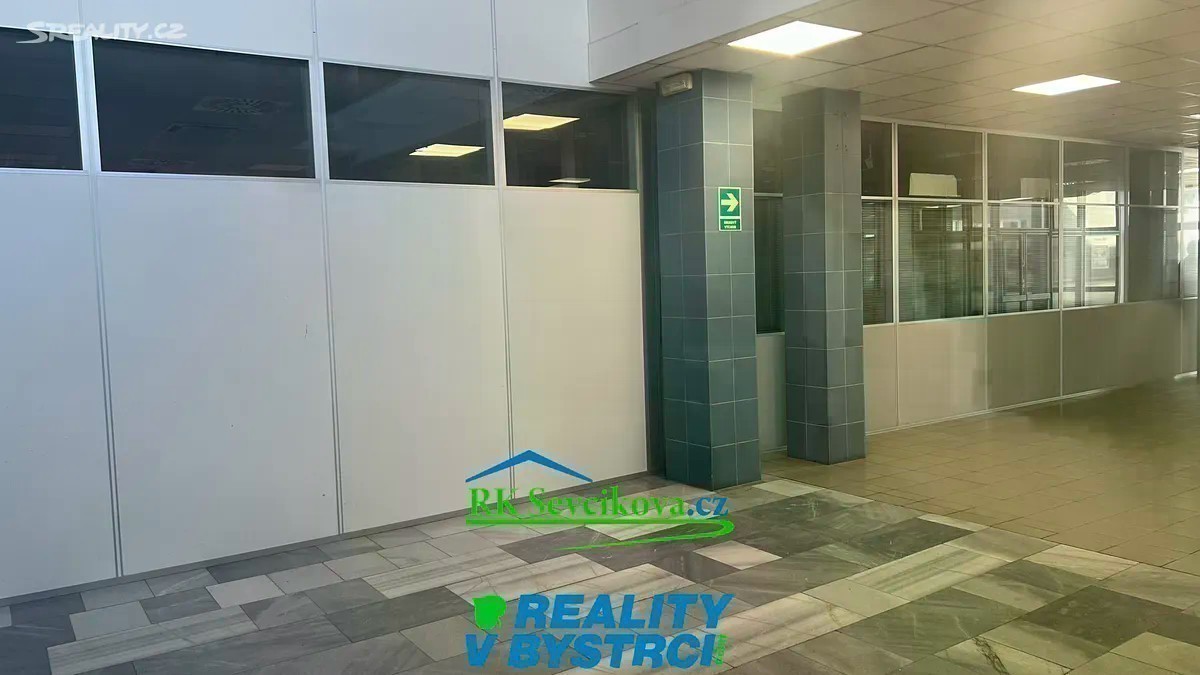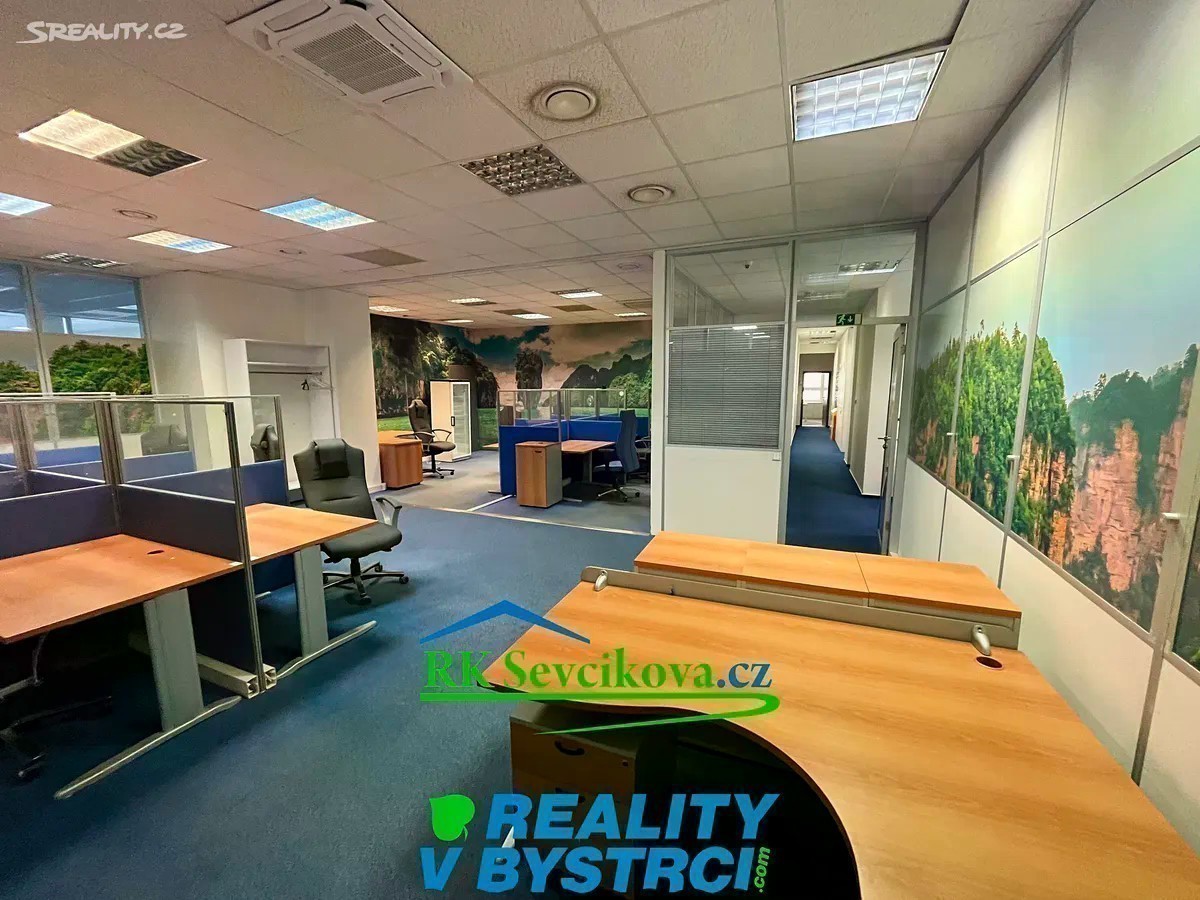 Nabízíme k pronájmu zrekonstruované kancelářské prostory o celkových rozměrech cca 150 m2, K dispozici jednotlivé kanceláře cca 11-18 m2. Pronájem 3000,-Kč za m2/rok u kanceláří s okny. Prostory některých kanceláří jsou situované do atria a zde je cena 2500,-Kč/ m2/rok. Klimatizace. Možno propojit do obchodní části komplexu dveřmi. Kanceláře jsou umístěny v II.NP objektu OC Max v Bystrci. Vstup možný v přízemí z horního parkoviště. K dispozici společné WC. Vybavení dohodou. Vhodné pro kanceláře, obchod či sklad. Volné ihned. Cena nájmu + služby (odvoz odpadu, ostraha,. ) + energie OC Max je největší a nejvíce navštěvovaný komplex v Bystrci - je zde pošta, lékaři, lékárna, ZUŠ, obchody a služby.