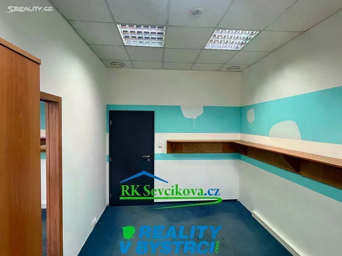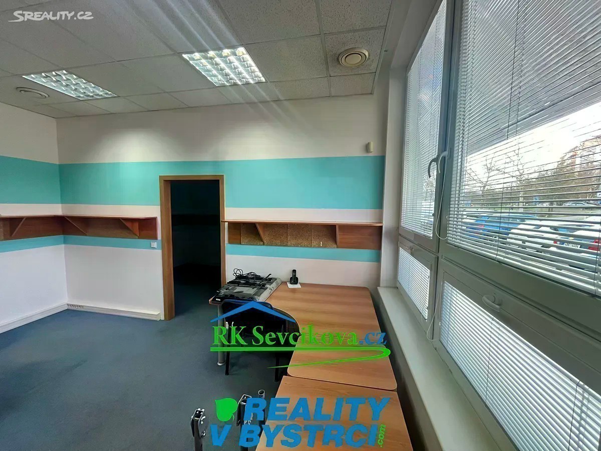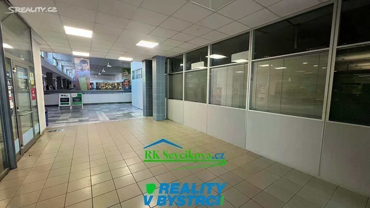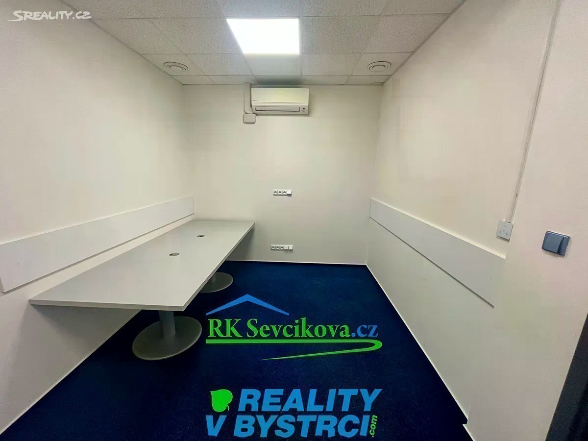 Nabízíme k pronájmu zrekonstruované kancelářské prostory o celkových rozměrech cca 150 m2, K dispozici jednotlivé kanceláře cca 11-18 m2. Pronájem 3000,-Kč za m2/rok u kanceláří s okny. Prostory některých kanceláří jsou situované do atria a zde je cena 2500,-Kč/ m2/rok. Klimatizace. Možno propojit do obchodní části komplexu dveřmi. Kanceláře jsou umístěny v II.NP objektu OC Max v Bystrci. Vstup možný v přízemí z horního parkoviště. K dispozici společné WC. Vybavení dohodou. Vhodné pro kanceláře, obchod či sklad. Volné ihned. Cena nájmu + služby (odvoz odpadu, ostraha,. ) + energie OC Max je největší a nejvíce navštěvovaný komplex v Bystrci - je zde pošta, lékaři, lékárna, ZUŠ, obchody a služby.