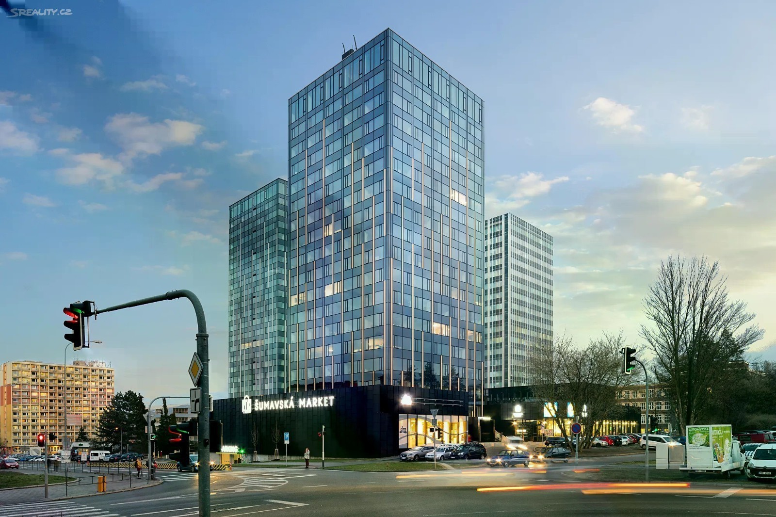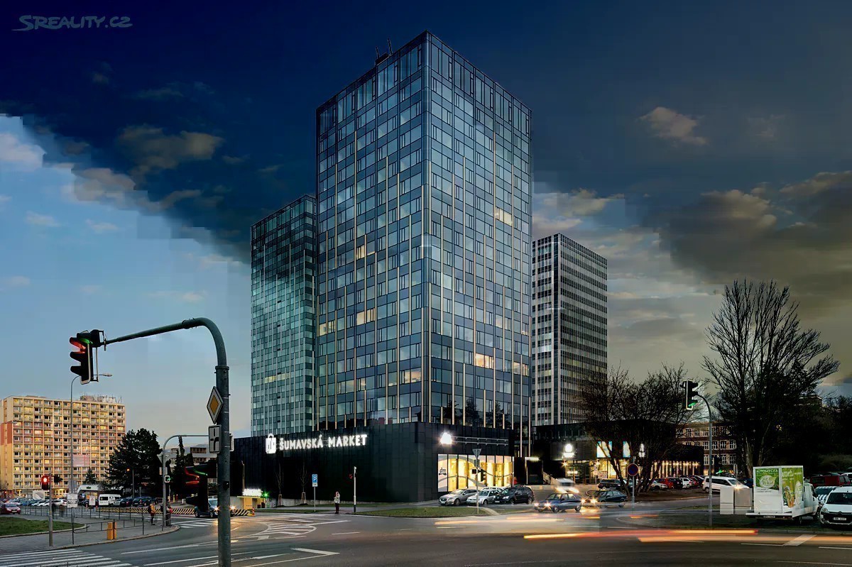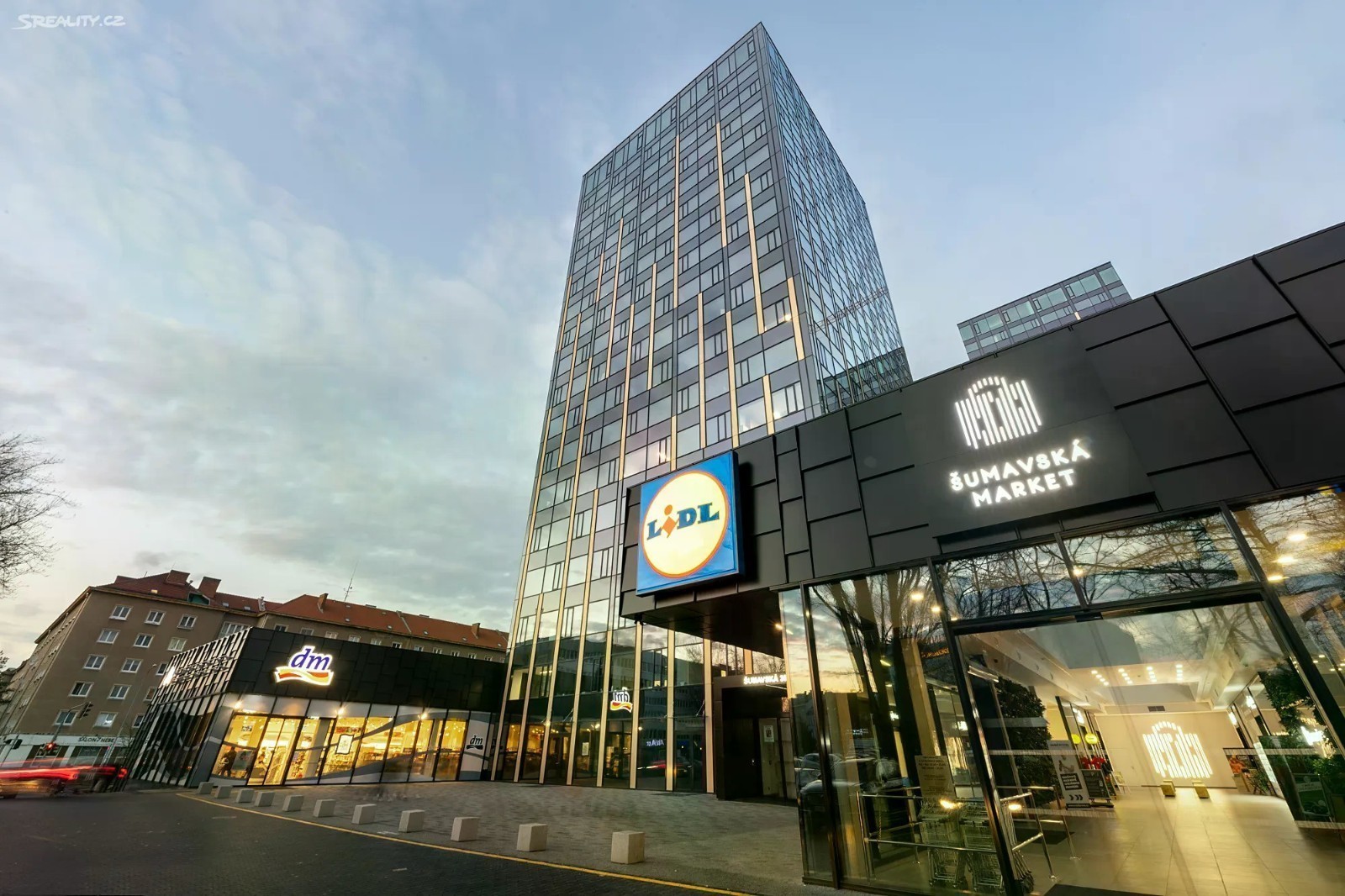 Administrativní komplex ŠUMAVSKÁ tower tvoří seskupení tří výškových budov (Budova A, B, C), propojených obchodní galerií ŠUMAVSKÁ Market. Tyto brněnská „trojčata“ představují významnou dominantu města Brna a nacházejí se na ulici Šumavská. Výšková budova "C" má 18 nadzemních podlaží, budova "B" nabízí 22 nadzemních podlaží a nejvyšší budova "A" disponuje 24 nadzemními podlažími. Standardem kancelářských budov ŠUMAVSKÁ tower jsou garážová i venkovní parkoviště, nabíjecí stanice pro elektromobily, bezbariérový přístup, celodenní ostraha a další služby. V obchodní pasáži ŠUMAVSKÁ Market můžete již nyní navštívit například Lidl, kavárnu, lékárnu, drogerii dm, trafiku a další obchody. Nad obchodní galerií se nachází pobočka České pošty. Součástí komplexu bude také zelená střešní zahrada s parkovou úpravou a relaxační zónou. K pronájmu Vám budou k dispozici obchodní prostory v nákupní galerii AB o výměrách 50, 100 a více m². Celý areál se nachází v těsné blízkosti centra města s docházkovou vzdáleností MHD a dobrým dopravním napojením (VMO, D1, R43 Brno - Svitavy). Součástí každé budovy komplexu je vlastní parkoviště s mycí linkou. V současnosti je k dispozici 200 garážových parkovacích míst a po dokončení projektu bude k dispozici až 550 parkovacích míst. Rádi Vás na osobní schůzce seznámíme s dalšími detaily projektu, kterou spojíme s prohlídkou kancelářských prostor našich nájemců.