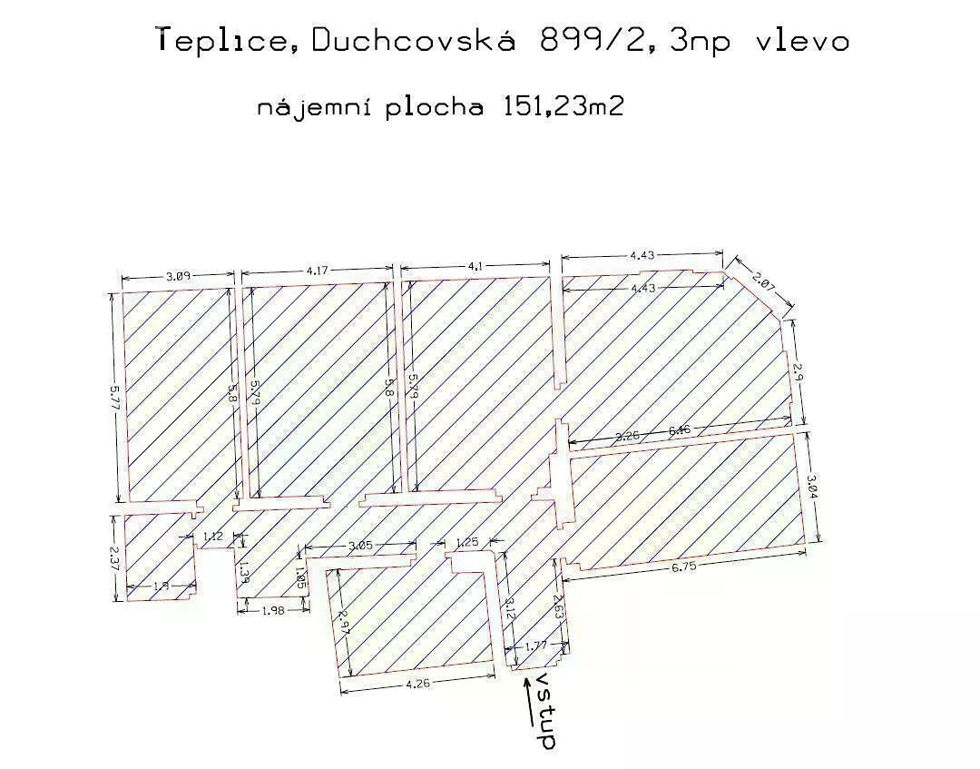 151,23 m2 Pronájem nebytových prostor vhodných pro kancelářské využití o celkové ploše 151.23 m2. Prostor se nachází v 2. patře domu, je částečně vybaven kancelářským nábytkem, k dispozici je také zařízená kuchyňka a sociální zařízení, je zde vlastní kotel pro ohřev vody a topení, elektřinu a teplo si zajišťuje nájemce u svého poskytovatele. Místo je ideální obchodní příležitostí díky své poloze na frekventované Duchcovské ulici, v blízkosti centra města Teplice a také díky výjezdu směrem na dálnici. K dispozici je dostatek parkovacích míst v okolí.