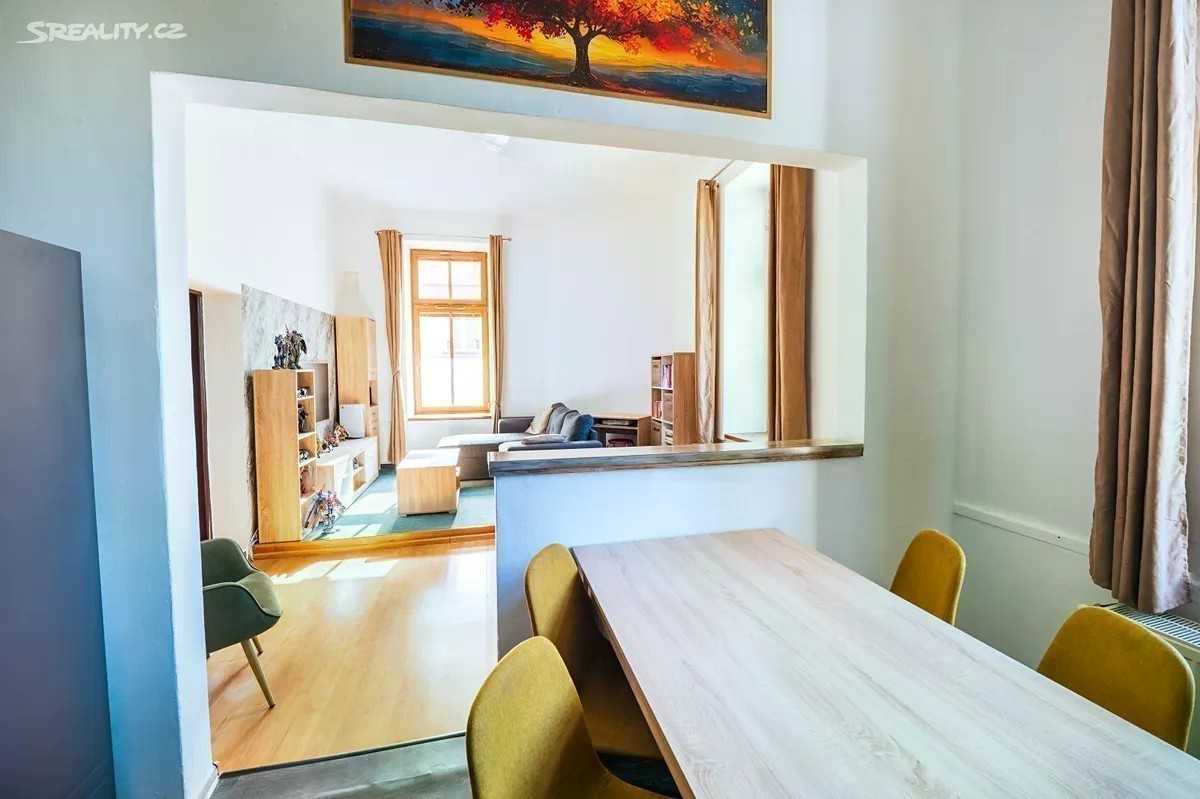 Nabízím k prodeji světlý a prostorný byt o dispozici 3+1, který se nachází v atraktivní a klidné lokalitě Trutnova - přímo na Jiráskově náměstí. Byt je umístěn v 1. nadzemním podlaží cihlového domu z roku 1919, č.p. 196. O nemovitost se stará fungující a dobře hospodařící SVJ. Celková podlahová plocha bytu činí 75,35 m². K bytu náleží také dva sklepy a dva půdní prostory, které nabízí další úložné možnosti. Díky orientaci na jihovýchod je byt velmi světlý a slunný po většinu dne. Výška stropů je 3,4 metru, což otevírá možnosti pro využití prostoru nejen horizontálně, ale i vertikálně. Velkým benefitem je také menší zahrádka za domem, kterou může nový majitel využívat ke grilování, sušení prádla nebo jen k příjemné relaxaci. Výhody a benefity: - Chytré řešení spací zóny - díky výšce stropů je lůžko vybudováno nad obytným prostorem, takže nezabírá užitnou plochu. - Obytná část tak zůstává plně využitelná (cca 12 m² navíc), bez překážející postele. - Možnost využívat menší zahrádku za domem - ideální na relax, grilování nebo sušení prádla. - Světlý a klidný byt s orientací na jihovýchod. - Vysoké stropy umožňují praktické využití prostoru do výšky (mezipatra, galerie). Dispozice a výměry bytu: Chodba - 4,34 m² Koupelna s WC a rohovou vanou - 4,46 m² Kuchyně propojená s obývacím pokojem - 35,09 m² Dětský pokoj s vestavěným spaním pro tři děti - 19,01 m² Ložnice s vestavěným lůžkem - 12,45 m² Stropní výška - 3,4 m Celková podlahová plocha: 75,35 m² + sklepní a půdní kóje o velikosti 34 m² Technické informace a náklady: Ohřev vody a teplo je zajištěno pomocí plynového kondenzačního kotle, který je umístěn v kuchyni. Elektřina, plyn a voda mají své měřiče. - Elektřina: 1 900 Kč - Plyn: 2 800 Kč - Voda: 530 Kč - Fond oprav + osvětlení: 2 354 Kč Celkové náklady: 7 584 Kč Technické údaje o domě: - dům pochází z roku 1919 - konstrukce: kámen, cihly - dům je chemicky podřezaný - střecha ošetřena ochranným nátěrem - v plánu je fasáda Byt je ideální volbou pro ty, kteří hledají prostorné a komfortní bydlení v blízkosti centra města, a zároveň chtějí žít v klidném prostředí s výbornou dostupností všech služeb.