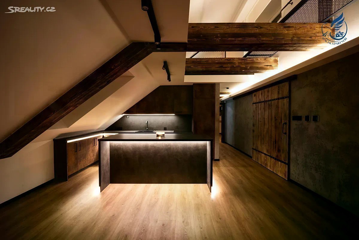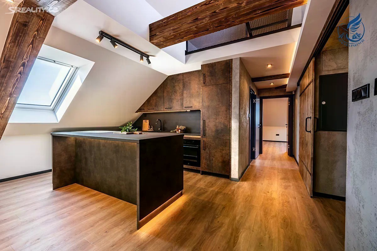 Vyjímečný, zároveň kouzelný a nevídaný? Ano, takto lze popsat tento luxusní byt v Hradci Králové, který nemá obdoby. S radostí Vám představím tento ojedinělý a originálně řešený podkrovní byt, který ještě voní absolutní novotou a Vy můžete být tím prvním, kdo si ho bude užívat. Jedná se dispozičně o 3kk s prostornou výměrou 115 m² dle projektové dokumentace + nad bytem nalezneme ještě další úložný prostor v galerii cca 40 m² využitelných i na přespání, kde se fantazii meze nekladou. Velikou předností tohoto bytu je rozměrná terasa do vnitrobloku s krásným výhledem do okolí a krásnou noční atmosférou. Profesionální korténová a betonová stěrka tvoří dokonalou harmonii stylu a kvality. Interiér je vzdušný a díky otevřenému prostoru s galerií a střešním oknům je plný přirozeného světla. Kuchyně, s ostrůvkem na míru, plynule navazuje na jídelní a obývací část, kde si tento pohled určitě zamilujete. Do bytu se dostanete výtahem a nebo sportovně po schodech. O komfort domova se stará podlahové vytápění a rekuperační jednotka doplněná i o klimatizaci se zabezpečovacím zařízením. V prostorné koupelně se můžete těšit na vanu nebo sprchový kout walk-in v moderním a neotřelém provedení. Naleznete zde i přípravy pro pračku a sušičku. Večery budou příjemnější a ambientně pojaté díky důmyslnému rozmístění světelných zdrojů, jenž prostoru dají jiný rozměr a pocit. Prozkoumejte jej na fotografiích. Už byste si chtěli tyto veškeré výhody a detaily zažít na vlastní kůži? Stačí se mi ozvat a rád Vám celý byt ukážu v celé jeho kráse. Průkaz energetické náročnosti bytu je v procesu zpracování, bude dodáno. Nemovitost je prodávaná bez nábytku.