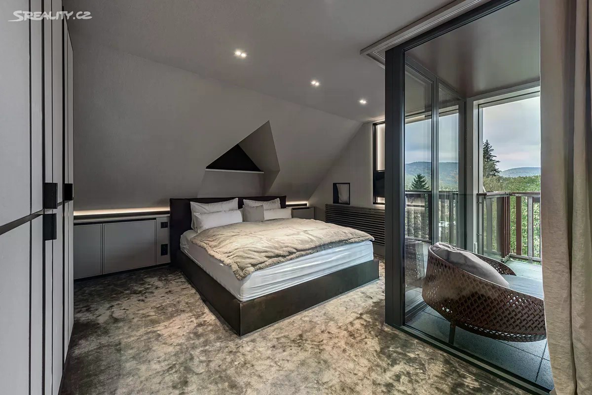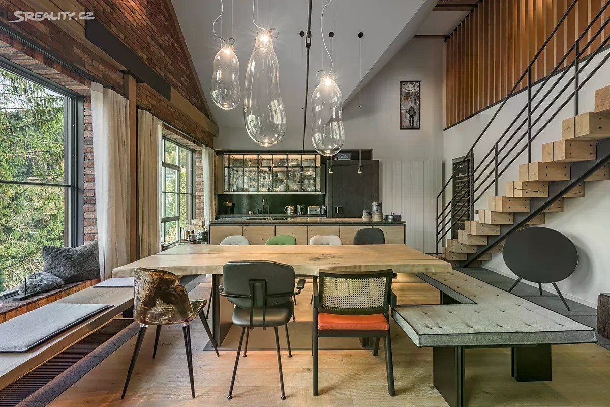 Sotheby's Int. Realty Czech Republic nabízí k prodeji jedinečný mezonetový byt v žádané lyžařské lokalitě, v centru Špindlerova Mlýna. Tento velkorysý penthouse prošel na přelomu roku 2020/2021 rekonstrukcí podle návrhu přední české architektky Barbory Škorpilové, díky čemuž vznikl moderní prostor kombinující horské a industriální prvky s výhledy do okolní přírody Krkonoš. Přímo z výtahu vejdete do vstupní haly vybavené úložnými prostory a designovými sušáky na oblečení po celodenním lyžování. Hlavní dominantou spodního patra je otevřený prostor obývacího pokoje s kuchyní o celkové výměře téměř 72 m2 a stropem přes obě patra bytu. Zvětšením oken ve štítu budovy a vybudováním prosklené terasy se otevřel nádherný výhled do širokého okolí. Ve spodním patře se dále nachází hlavní ložnice s vestavěnými skříněmi a vlastní koupelnou. Pro hosty je zde samostatný byt s ložnicí, koupelnou a obývacím pokojem s kuchyňským koutem. V horním patře bytu jsou 3 ložnice se společnou koupelnou, sauna a vířivka Jacuzzi. Pro byt byl vytvořen unikátní design se zabudovaným vybavením jako kuchyň, skříně, krb a dveře, vše navržené a vyrobené na míru přímo pro tento byt. Na podlahách jsou kombinace masivního dřeva, lávového kamene, ručně tkaných indických koberců a italské keramiky. Designové osvětlení od předních světových značek bylo dodáno společností BULB a individuálně navrženo pro dokonalou atmosféru v každé místnosti. Součástí realizace byla výroba unikátního světla „sponka na trám“ se čtyřmi reflektory. K bytu náleží 2 sklepy a 3 parkovací místa, 2 venkovní a 1 v garáži. Lokalita - Krkonoše - Špindlerův Mlýn Špindlerův Mlýn patří mezi nejprestižnější lyžařská a rekreační střediska v České republice, již dříve označovaná jako perla Krkonoš. Je situován 150 km, cca 2 hodiny jízdy autem z centra Prahy. Nabízí výjimečné klimatické podmínky, rozmanitou horskou přírodu a široké možnosti sportovního vyžití. To jsou hlavní důvody, proč se tento - původně především zimní rezort - stal celoročně navštěvovanou lokalitou oblíbenou i u těch nejnáročnějších zákazníků. V létě lákají ranní procházky kolem Labe nebo náročné túry na hřebenech hor, v zimě vás čekají skvěle upravené sjezdovky a běžecké stopy.