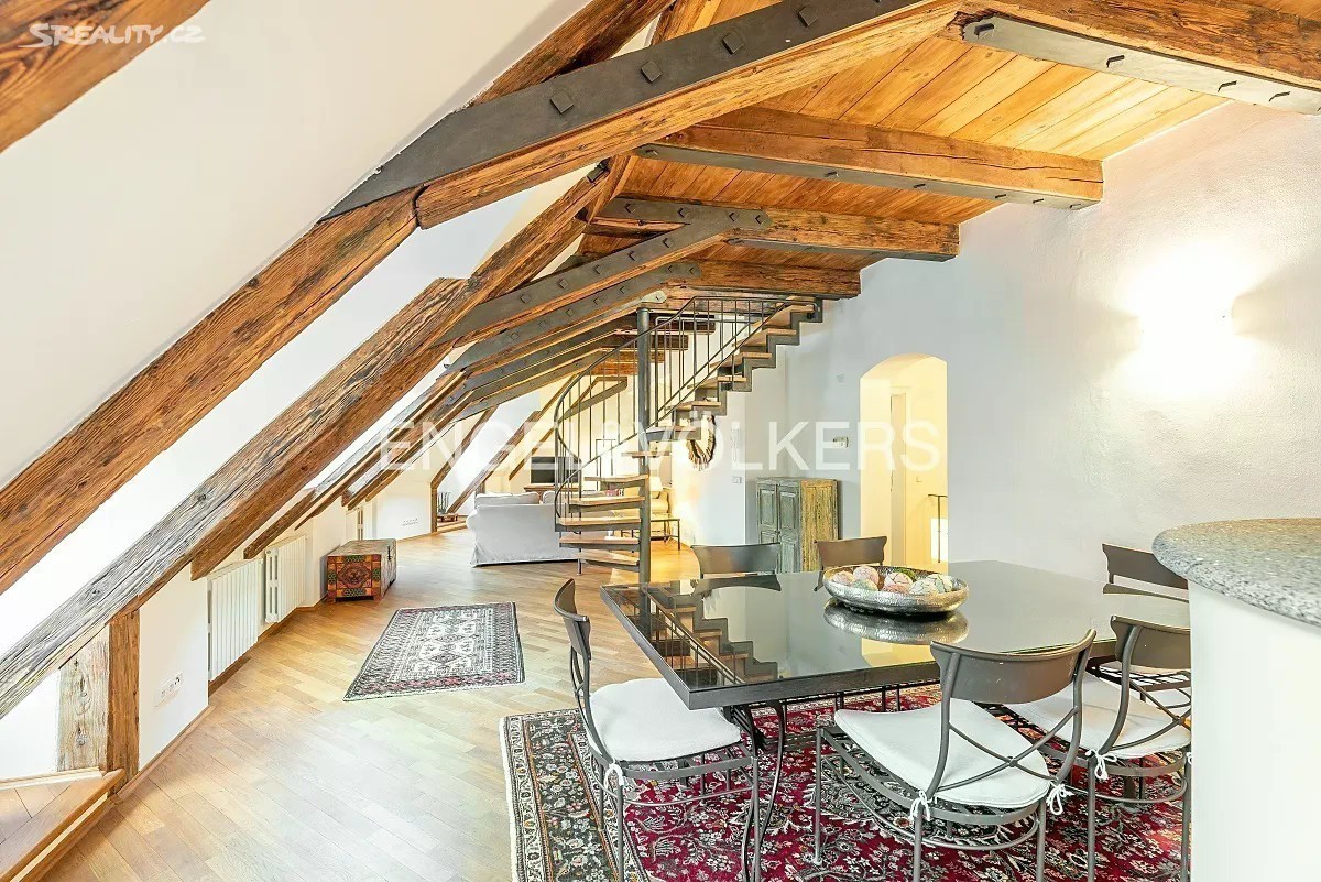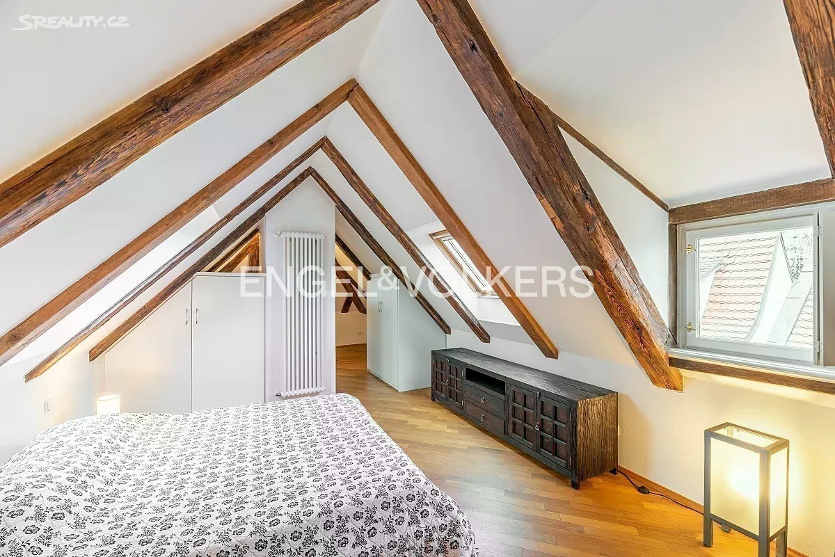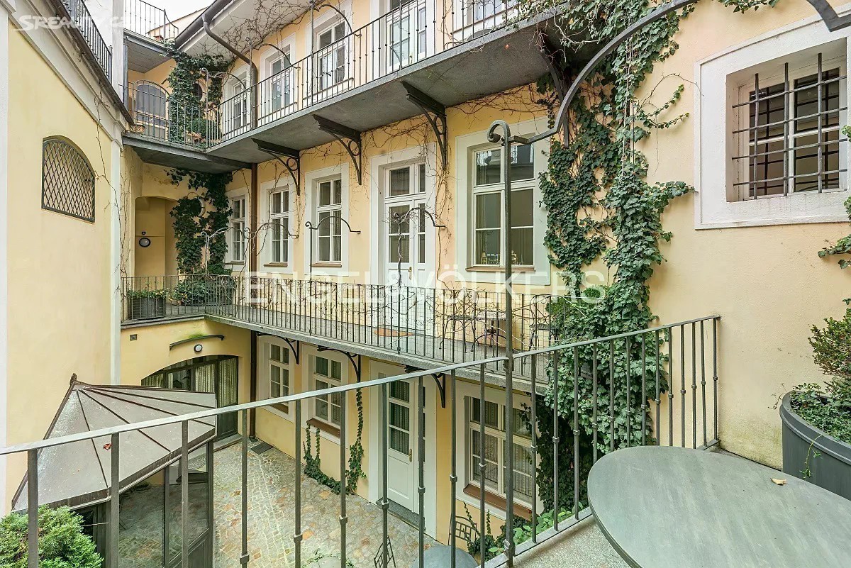 Skvělá adresa k bydlení v sousedství německé a americké ambasády. Historický činžovní dům z 16. století po kompletní rekonstrukci. Rekonstrukce zachovala veškeré původní architektonické a dekorační prvky. Podkrovní mezonetový a zařízený byt 4+kk se třemi ložnicemi, dvěma koupelnami a s nádherným výhledem na Pražský hrad a Petřín. V prvním patře se nachází prostorný světlý obývací pokoj spojený s jídelním prostorem a plně vybavenou kuchyní (lednice, mrazák, trouba, varná deska, myčka), dvě ložnice a koupelna. Ve druhém patře je otevřený prostor - ložnice s částečně oddělenou pracovnou a druhá koupelna. Pračka a sušička součástí pronájmu. Podlahy jsou dřevěné. K nastěhování ihned.