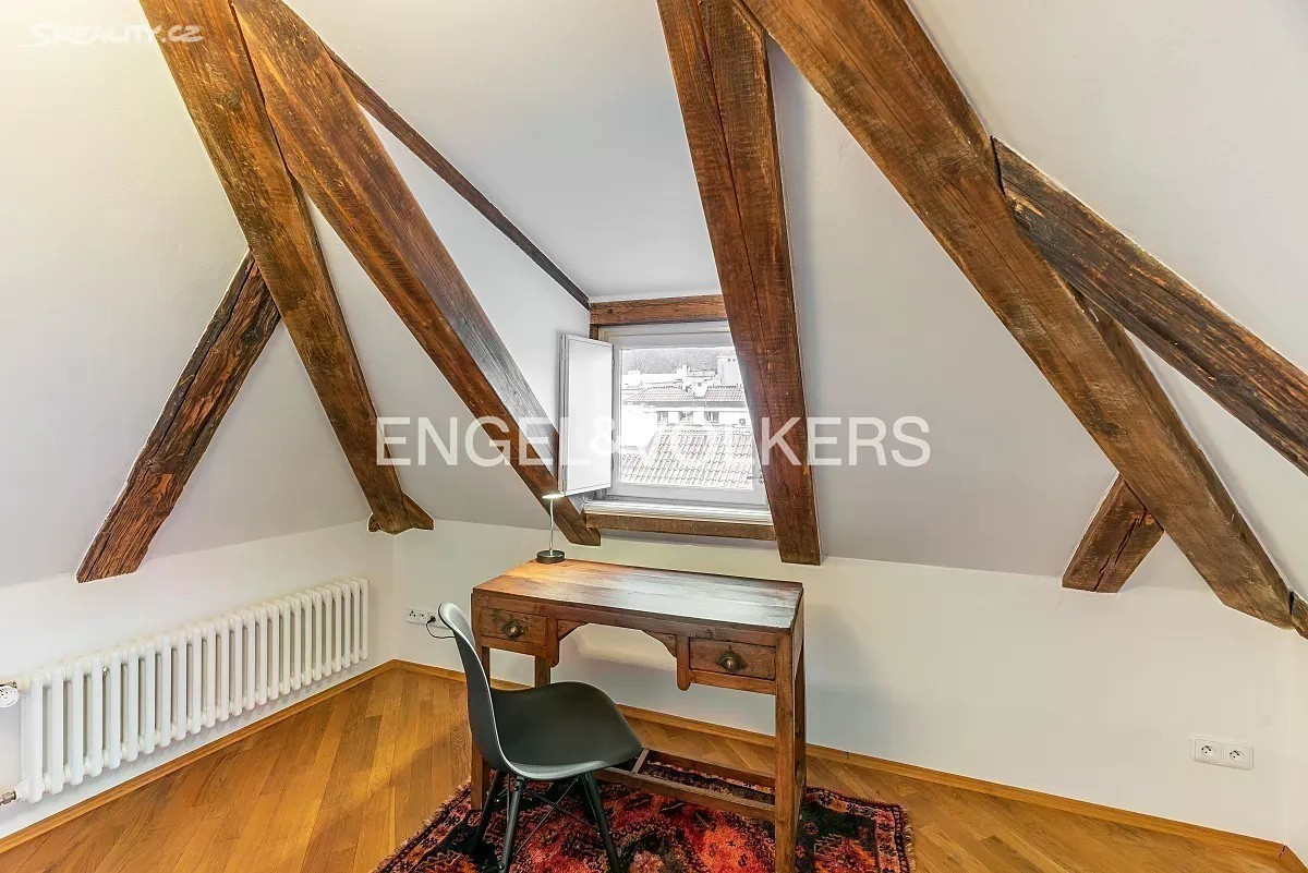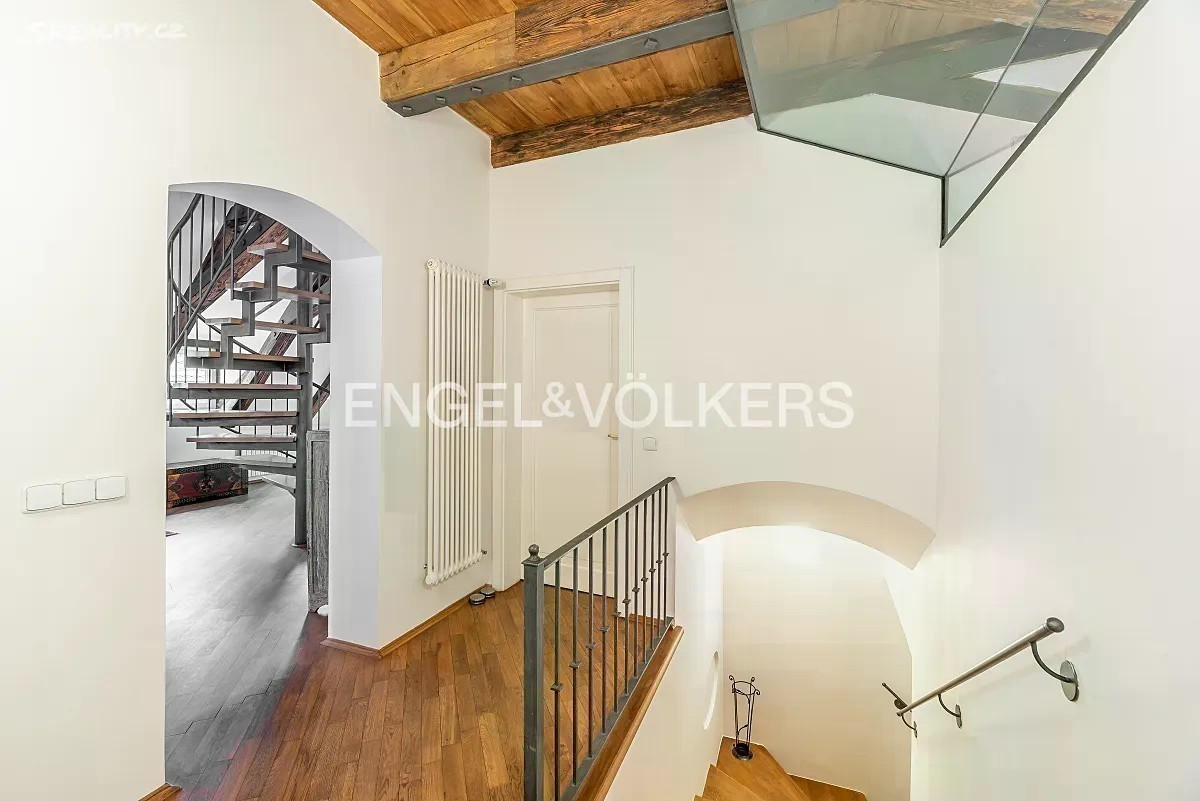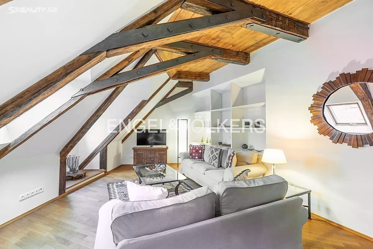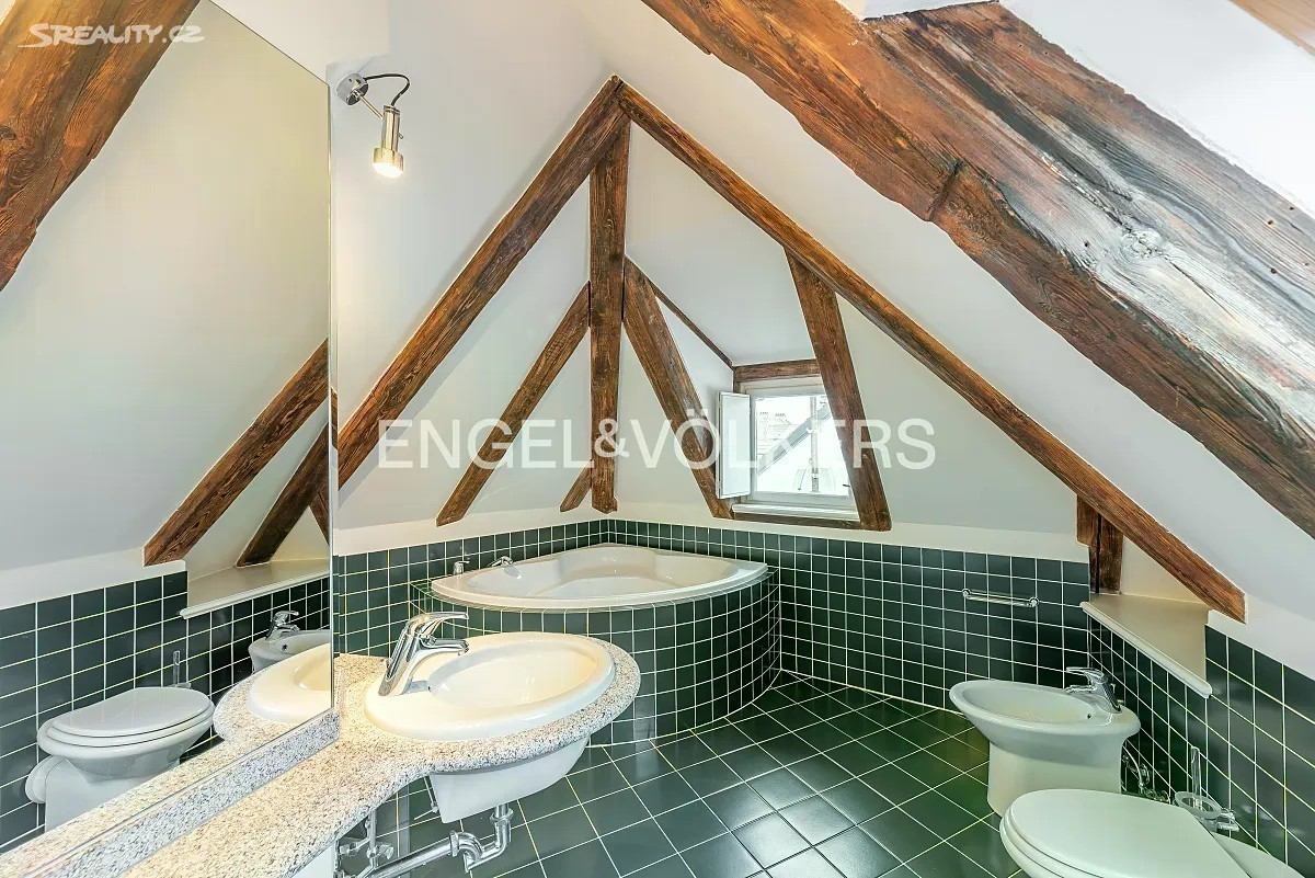 Skvělá adresa k bydlení v sousedství německé a americké ambasády. Historický činžovní dům z 16. století po kompletní rekonstrukci. Rekonstrukce zachovala veškeré původní architektonické a dekorační prvky. Podkrovní mezonetový a zařízený byt 4+kk se třemi ložnicemi, dvěma koupelnami a s nádherným výhledem na Pražský hrad a Petřín. V prvním patře se nachází prostorný světlý obývací pokoj spojený s jídelním prostorem a plně vybavenou kuchyní (lednice, mrazák, trouba, varná deska, myčka), dvě ložnice a koupelna. Ve druhém patře je otevřený prostor - ložnice s částečně oddělenou pracovnou a druhá koupelna. Pračka a sušička součástí pronájmu. Podlahy jsou dřevěné. K nastěhování ihned.