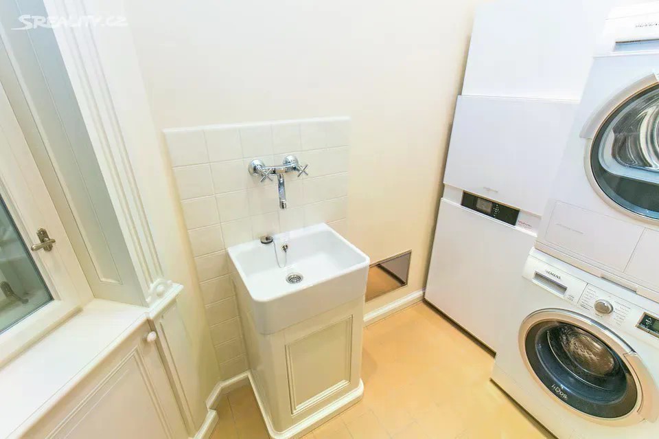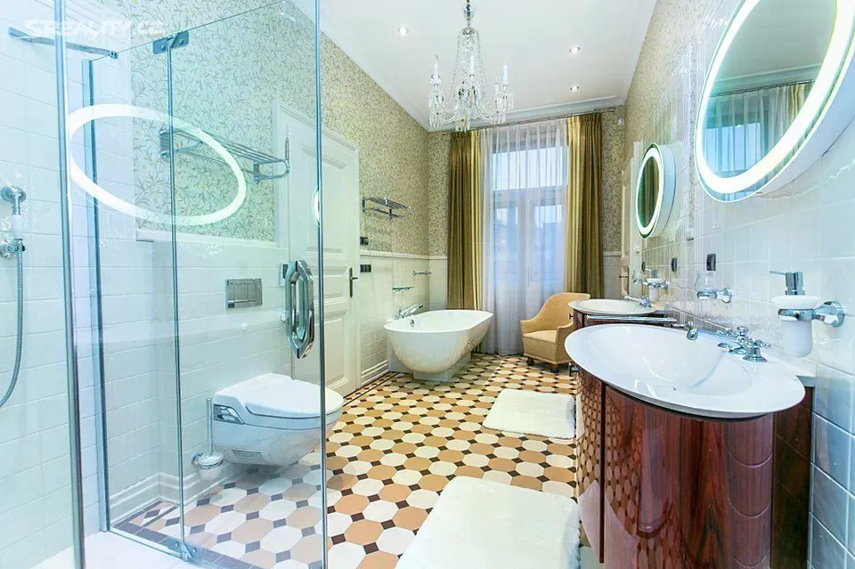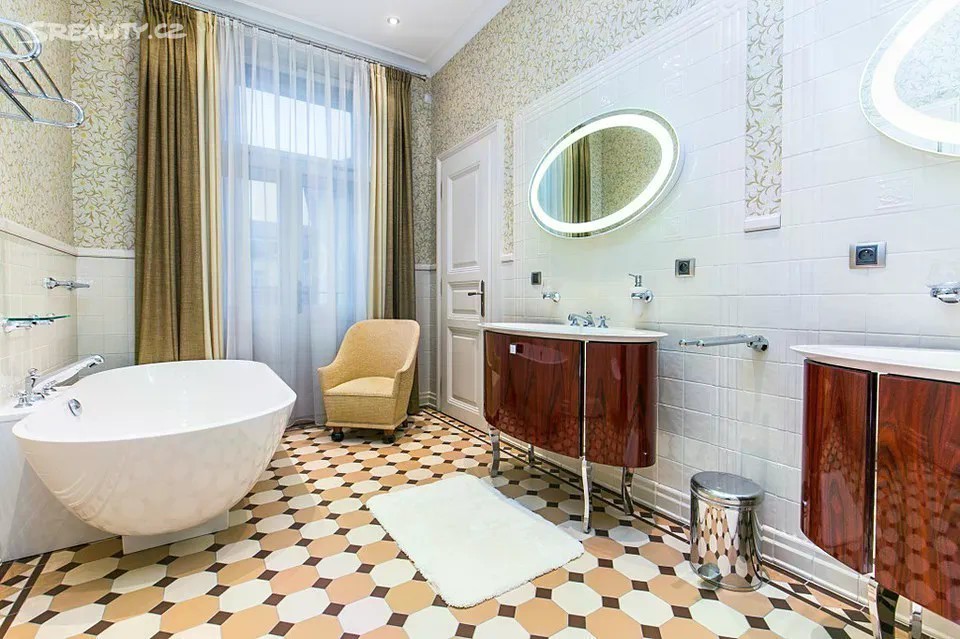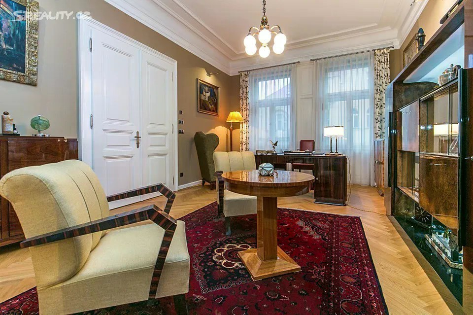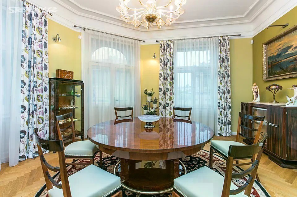 Nabízíme pronájem nádherného zařízeného luxusního bytu 4+1, 184 m2 v těsné blízkosti Staroměstského náměstí a Židovského hřbitova. Byt po mimořádně zdařilé komplexní rekonstrukci je situován ve 4. patře secesního domu s designovým výtahem. Je zařízen původním historickým nábytkem a disponuje ložnicí, pracovnou, obývacím pokojem, jídelnou, plně vybavenou prostornou kuchyní, luxusní koupelnou, vstupní halou, technickou a úložnou komorou, WC pro hosty a dvěmi balkony. Kvalitní kuchyňské spotřebiče, pračka a sušička, TV, domácí kino a satelitní připojení. V koupelně nechybí solitérní vana, masážní sprchový kout a WC. Originální architektonické prvky v bytě dále umocňují vysoké stropy, velká okna, repasovaná kachlová kamna a designová původní svítidla. Dubové parkety a dekorativní dlažba na podlaze. Vstupní bezpečnostní dveře, alarm, videotelefon. Podlahové topení s plynovým etážovým kotlem zn. Viessmann. Nájemcům je k dispozici za cenu po dohodě také unikátní privátní vinný sklep v suterénu. Sklep s klenutými stropy prošel rovněž kompletní rekonstrukcí, skládá se ze dvou klimatizovaných místnosti a toalet a umožňuje jak skladování vína, tak příjemné posezení. Cena pronájmu bytu: 129 000,-Kč / měsíc, poplatky za služby: 6 000,-Kč / měsíc, plus energie (elektřina a plyn) se převádí na nájemce. K dispozici okamžitě. Energetická náročnost budovy: G (nebyla sdělena vlastníkem nemovitosti).
