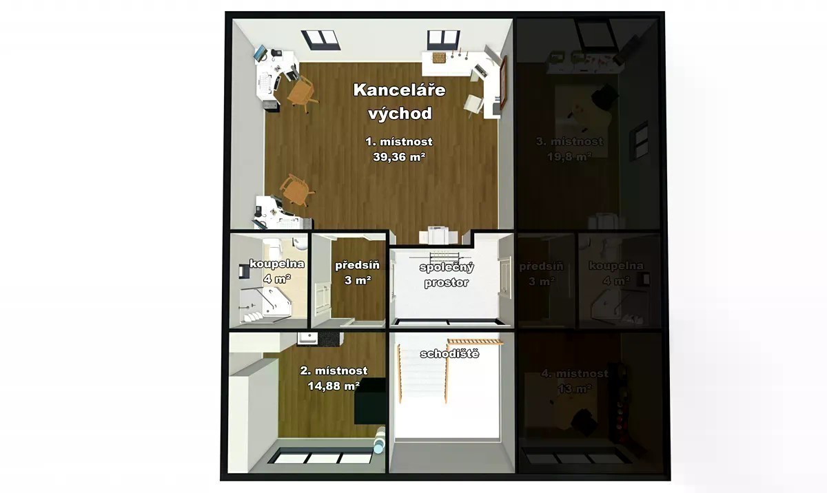 Pronajmu prostor k podnikáni o výměře 60 m2 v posledním podlaží prvorepublikové vily v ul. Na břevnovské pláni, Praha 6, Břevnov. Celkem 60 m2 - 2 neprůchozí kanceláře, plně vybavené kancelářské prostory = místnost 39 m2 + místnost 12 m2, plně vybavená kuchyňka + koupelna = sprcha + WC + předsíň Podlahy: dlažba, zátěžový koberec, Technika: video vrátný, 2x stolní PC + síť., skartovačka, velká tiskárna A3, internet dle dohody Nábytek: moderní kancelářské stoly až 7 ks, kancelářské židle, zasedací židle, odpadkové koše atd. Vytápění: plynovým kotlem Junkers. Elektřina: síť + solární panely Parkování před domem a v okolí bez zón. Dostupnost MHD: 3 minuty tram č. 22, 25 a bus na Vypich a M-Petřiny. Autem: blízkost silničních komunikací Bělohorská a Karlovarská, Pražský okruh, Městský okruh, i výpadových komunikací směrem na Karlovy Vary, Plzeň, Letiště Ruzyně. Umíme zařídit rozšíření prostor až na 100 m2. Neváhejte nás kontaktovat.
