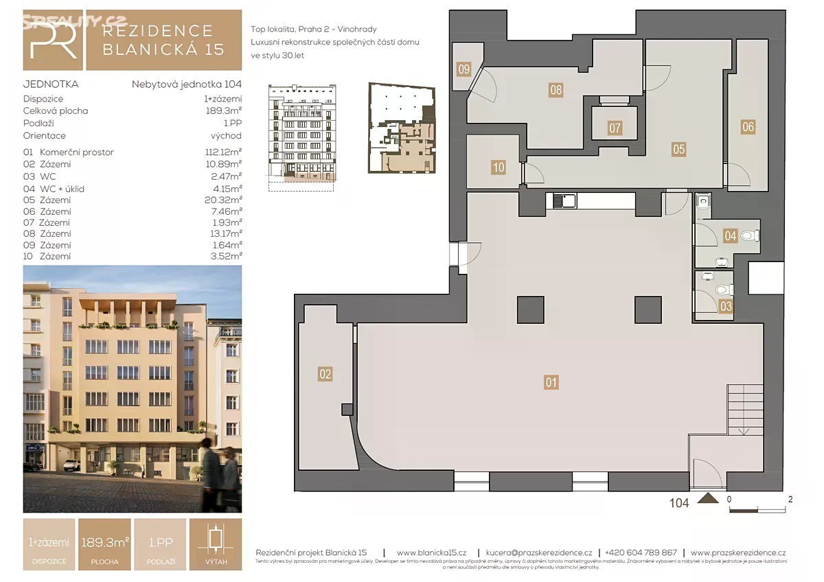 Nabízíme k prodeji obchodní prostory s vlastním vstupem z ulice v projektu "Rezidence Blanická 15". Prostory se nacházejí v 1.PP budovy, která prochází rozsáhlou rekonstrukcí jednotek i společných částí, vč. fasády, všech rozvodů atd. na zajímavou Vinohradskou ulici. Užitná plocha činí 189 m2, což poskytuje dostatek prostoru pro realizaci různých obchodních aktivit. Využití lze jako obchod či kancelář. Prostory nabízíme ve stavu "Shell&Core". Pokud Vás tato jednotka zaujala, neváhejte nám napsat nebo zavolat a rádi Vám vše ukážeme osobně. Prohlídky jsou možné po předchozí domluvě. Pro více informací o této nemovitosti nebo sjednání prohlídky nás prosím kontaktujte nebo vyplňte níže uvedený formulář, rádi Vám pomůžeme.