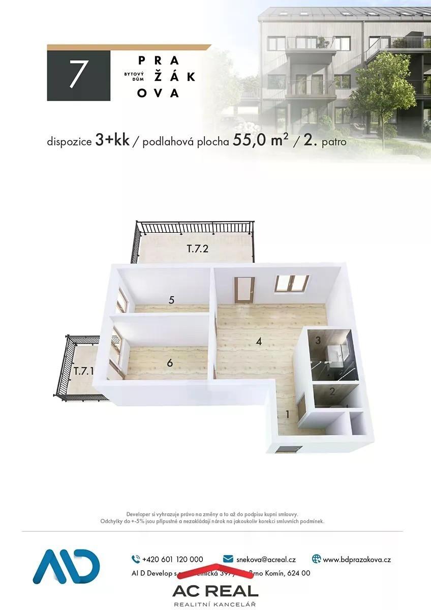 Moderní mezonetový byt 3+kk s terasou v projektu Pražákova - komfortní bydlení pro rodinu Hledáte prostorné a promyšlené bydlení pro rodinu v atraktivní lokalitě? Nabízíme moderní mezonetový byt 3+kk v novostavbě na ulici Pražákova, který splní všechny vaše požadavky na pohodlí i soukromí. Dispozice a přednosti bytu: Prostorný obývací pokoj s kuchyňským koutem je chytře oddělen od klidové zóny bytu, což zajišťuje maximální soukromí i v případě, že si někdo z vás chce užít večer s přáteli v obýváku. Hned u vstupu do bytu se nachází jedna ze dvou koupelen, což oceníte nejen při návštěvách. Z obývacího pokoje vede přímý vstup na jižně orientovanou terasu o rozloze 8 m² s výhledem do zahrad rodinných domů - ideální místo pro odpočinek nebo posezení s rodinou a přáteli. V podkroví najdete dvě prostorné ložnice a privátní koupelnu, která je přístupná přímo z ložnice rodičů. Díky rekuperaci, venkovním žaluziím a kvalitní izolaci střechy je v podkroví zajištěn příjemný teplotní komfort po celý rok. Dům Pražákova je součástí uzavřeného areálu s inteligentními technologiemi a energetickou úsporností. K dispozici jsou parkovací i garážová stání a sklepní kóje. Skvělá lokalita - v blízkosti univerzitního Campusu v Bohunicích, Spielberk Office Centra a s rychlým napojením na D1, D2 i do centra Brna. Vybavení bytu: Elektronicky ovládané vstupní dveře pro maximální pohodlí a bezpečnost Elektrické podlahové topení pro rovnoměrné a úsporné vytápění Rekuperace - stálý přísun čerstvého vzduchu a nižší náklady na vytápění Předokenní žaluzie pro větší soukromí a optimální teplotu v interiéru Odolná podlahová krytina SPC s bezspárovou technologií pokládky Designové obklady a zařizovací předměty prémiových značek Kaldewei, Villeroy & Boch Chytrý vstup do domu Zapomeňte na klíče - vstupte pohodlně pomocí čipu, aplikace nebo rozpoznání obličeje. V případě ztráty čipu jej jednoduše zablokujete přes aplikaci. Termín dokončení: červenec 2026 Pokud Vám tento byt nevyhovuje, neváhejte nás kontaktovat - v nabídce máme i další byty různých velikostí. Rádi Vám celý projekt osobně představíme u dobré kávy.