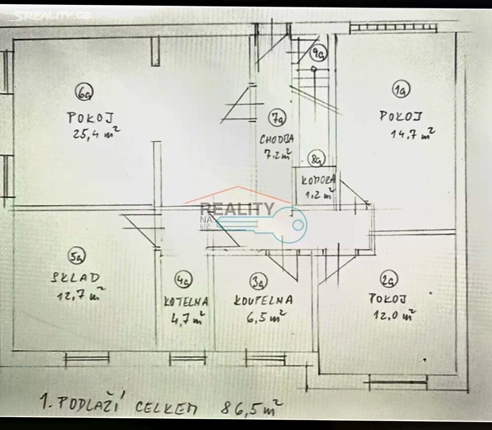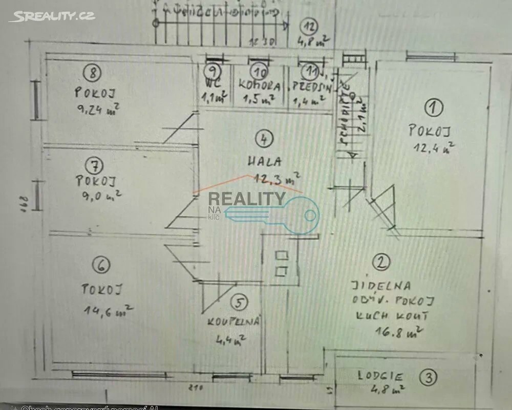 Prodej patrového, řadového domu (typ Okál) o velikosti 8+1/Lodžie, Praha 9 - Vinoř se zahradou, investiční příležitost. Dům sloužil jako ubytovna pro zaměstnance stavebních firem. Další možnost je, se časem domluvit s majitelem druhého řadového domku o prodeji, domy zbourat a postavit patrový obytný dům s byty a garážemi (předběžně bylo projednáno se stavebním úřadem). V přízemí jsou 3 garsoniéry s KK, 1x koupelna s vanou, spol s WC, kotelna a tech. místnost. Celkem 86,5m2 a v patře je hala, obývací místnost/jídelna s KK, pro ostatní pokoje společná, 4 x pokoj, koupelna s vanou, WC, komora, předsíň a lodžii. Celkem 90,24m2. K využití je ještě půda. Okna domu jsou původní, obal je sendvič. Elektrika je nová, revize v r. 2025. Na zemi jsou parkety, vinyl. V domě jsou nové dveře, včetně kování a nové kuch. linky. Střecha je pokryta eternitem. Dům stojí na vlastním, oploceném pozemku o 850m2, na kterém je kopaná studna s užitkovou vodou. Do domu jsou přivedeny inženýrské sítě, mimo plynu. Vinoř leží v severovýchodní části obvodu Prahy 9, směr Mladá Boleslav. Občanská vybavenost je na velmi vysoké úrovni. V MČ se nachází zdravotní středisko, školy, pošta, mnoho různých větších či menších komerčních objektů. V okolí je několik rybníků a zámků, pěkná lokalita pro sportování a cykloturistiku. Do Vinoře je velice dobré spojení metrem C a Bus. Cena za nemovitost je 16 500 000,-Kč. V ceně jsou zahrnuty právní služby a provize RK. Průkaz energetické náročnosti není k dispozici, z tohoto důvodu uvádíme energetickou třídu G.