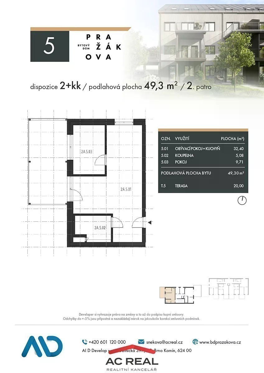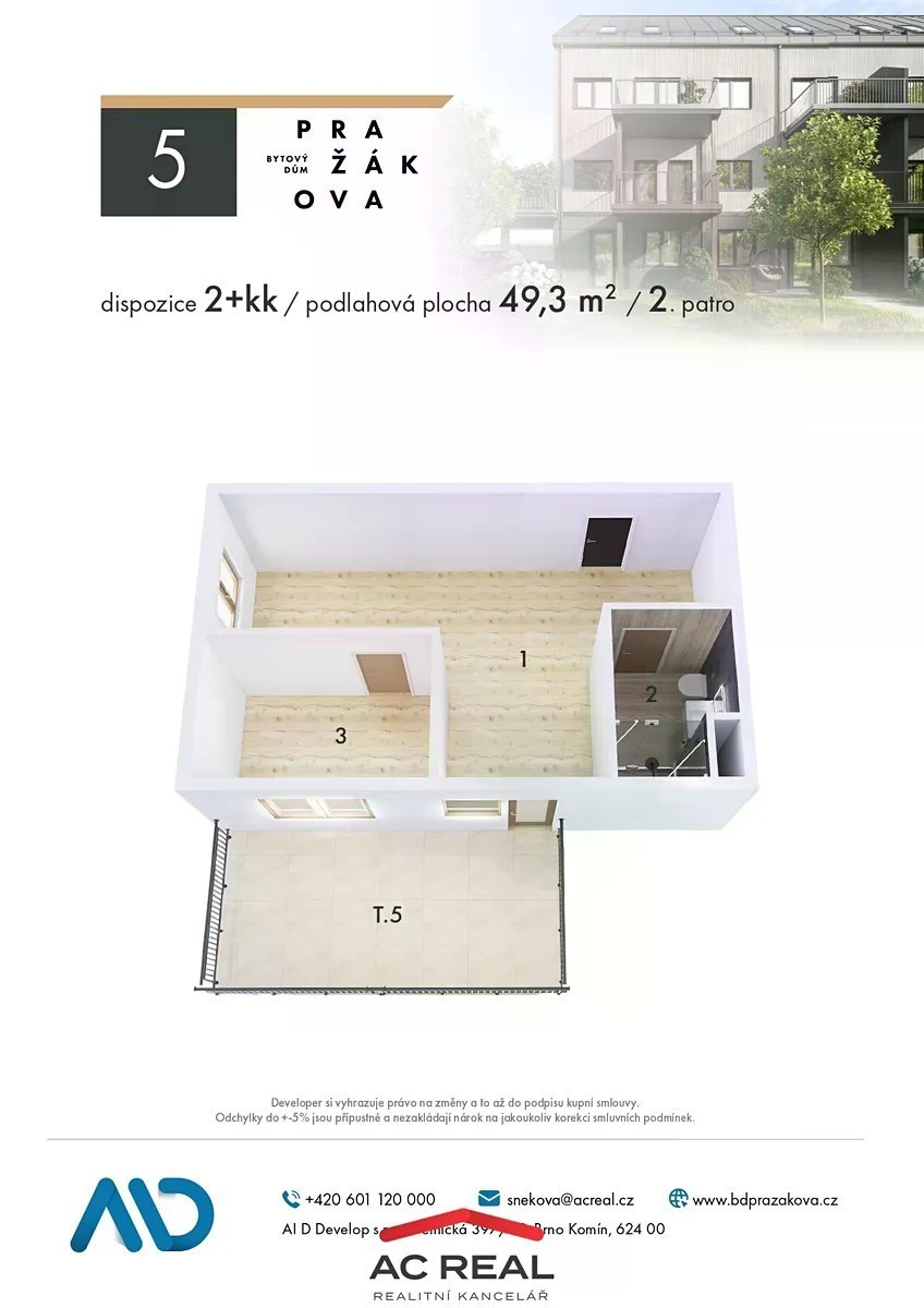 Prostorný a světlý byt 2+kk s velkou terasou. Hledáte moderní bydlení za skvělou cenu? Nabízíme krásný byt 2+kk v novostavbě na ulici Pražákova, který zaujme nejen svou dispozicí, ale i velkou terasou o rozloze 20 m², která je orientovaná západně, takže si zde můžete užít dlouhé večeři třeba se skleničkou. Byt je ideální pro páry, jednotlivce i jako investice. Dispozice a výhody bytu: Vstupní chodba se zádveřím poskytuje prostor pro šatnu. Obytná část je krásně světlá a propojená s kuchyní, odkud je přímý vstup na prostornou terasu - ideální místo pro relaxaci, grilování nebo posezení s přáteli. Díky terase se výrazně zvětšuje užitný prostor bytu. Z obývací zóny je vstup do samostatné ložnice a do velkorysé koupelny s WC. Bytový dům Pražákova je součástí uzavřeného areálu s inteligentními technologiemi a energetickou úsporností. K dispozici jsou parkovací i garážová stání a sklepní kóje. Skvělá lokalita - v blízkosti univerzitního Campusu v Bohunicích, Spielberk Office Centra a s rychlým napojením na D1, D2 i do centra Brna. Vybavení bytu: Elektronicky ovládané vstupní dveře pro maximální pohodlí a bezpečnost Elektrické podlahové topení pro rovnoměrné a úsporné vytápění Rekuperace - stálý přísun čerstvého vzduchu a nižší náklady na vytápění Předokenní žaluzie pro větší soukromí a optimální teplotu v interiéru Odolná podlahová krytina SPC s bezspárovou technologií pokládky Designové obklady a zařizovací předměty prémiových značek Kaldewei, Villeroy & Boch Chytrý vstup do domu Zapomeňte na klíče - vstupte pohodlně pomocí čipu, aplikace nebo rozpoznání obličeje. V případě ztráty čipu jej jednoduše zablokujete přes aplikaci. Termín dokončení: červen 2026 Využijte výjimečné nabídky za zahajovací ceny! Pokud Vám tento byt nevyhovuje, neváhejte nás kontaktovat - v nabídce máme i další byty různých velikostí. Rádi Vám celý projekt osobně představíme u dobré kávy.