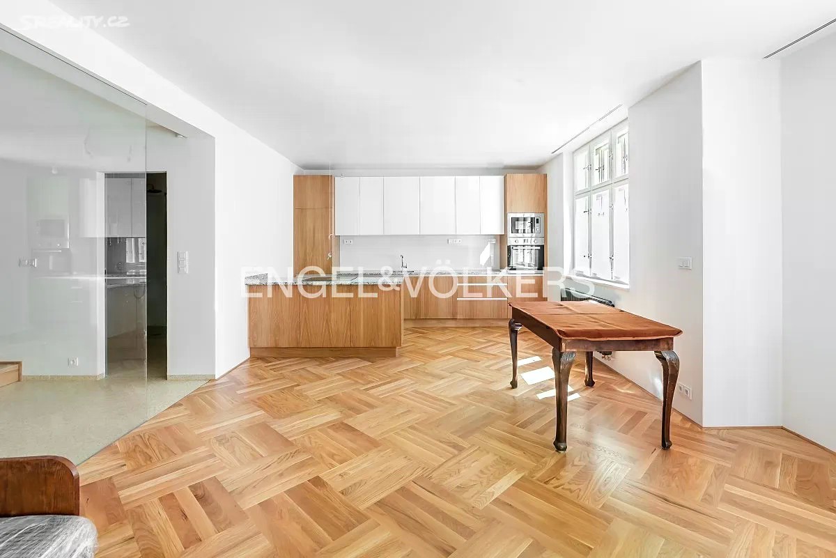 K okamžitému pronájmu je připravený nový velkorysý nezařízený a plně klimatizovaný podkrovní byt 2+kk, který se nachází v šestém nadzemním podlaží zrekonstruovaného činžovního domu s výtahem. Praktická dispozice bytu, kdy se ze vstupní předsíně s vestavěnou skříní vchází do jednotlivých místností. Prostorný obývací pokoj s kuchyní na míru vybavenou všemi spotřebiči je orientovaný do ulice Maiselova s výhledy na synagogu. Ložnice je orientovaná do klidného vnitrobloku. Koupelna se sprchovým koutem a toaletou. Poplatky činí 4 000 Kč a elektřina bude převedena na nájemce. Nájemce je srozuměn s provizí ve výši 1 měsíčního nájmu + DPH.
