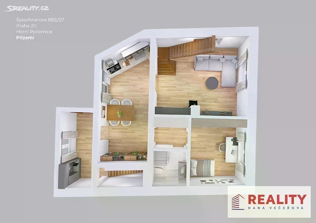 Prodej rodinného domu 194 m², pozemek 359 m² Šplechnerova, Praha - Horní Počernice