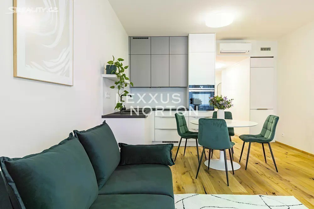Nabízíme nový elegantní byt k pronájmu o velikosti 52 m2 s terasou (9 m2), situovaný v 1. patře rezidenčního projektu Iconik s výtahem. Nemovitost se nachází v krásné lokalitě Prahy 8 - Karlín disponující veškerou občanskou vybaveností a dobrou dopravní infrastrukturou. Tento nový zařízený byt o dispozici 2+kk nabízí k užívání vstupní chodbu s vestavěnou skříní, prostorný obývací pokoj s plně vybaveným kuchyňským koutem, ložnici s vestavěnou skříní, koupelnu se sprchovým koutem a samostatnou toaletu. Z ložnice je vstup na terasu s výhledem do vnitrobloku. V bytě jsou dřevěné podlahy s podlahovým topením. Dále je vybaven inteligentní domácností Loxone, klimatizací a elektricky ovládanými venkovními žaluziemi. K bytu náleží sklep a garážové parkovací stání s auto výtahem za poplatek 3 000 Kč/měsíc. Ve vnitrobloku je k dispozici společný prostor na mytí kol a posezení. Velmi žádaná lokalita v sousedství centra Prahy kombinující nové i starší bytové domy, která disponuje výbornou dopravní dostupností. V docházkové vzdálenosti jsou zastávky tramvají a stanice metra Křižíkova. Autem dojedete na městský okruh za 7 minut, na letiště Václava Havla za 28 minut, do zábavního a obchodního centra Palladium už za 6 minut. V okolí najdete veškerou občanskou vybavenost - mateřské, základní a střední školy, gymnázium, lékárny, polikliniku, restaurace, supermarkety, dětská hřiště, poštu… Pro volnočasové aktivity můžete využít cyklostezku, golfové hřiště nebo halu Sokola Karlín. Na procházku se lze vydat do parků Před Invalidovnou, Vrch Vítkov, Karlínské náměstí, Kaizlových sadů nebo na Rohanský ostrov. Výše vyúčtovatelných měsíčních záloh činí 7 465 Kč + převod elektřiny na nájemce. Poptávající klient je srozuměn s úhradou provize ve výši 1 měsíčního nájmu plus DPH. Pokud si nemovitost nemůžete prohlédnout osobně, nabízíme Vám také videoprohlídku z pohodlí Vašeho domova v reálném čase přes Skype, Messenger, WhatsApp a další komunikační platformy.