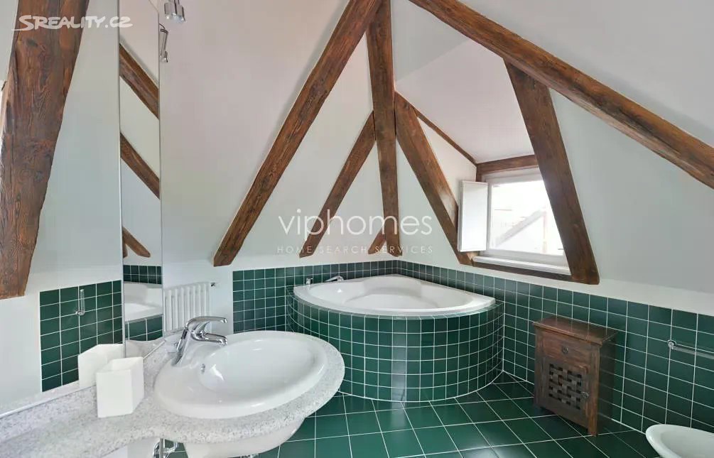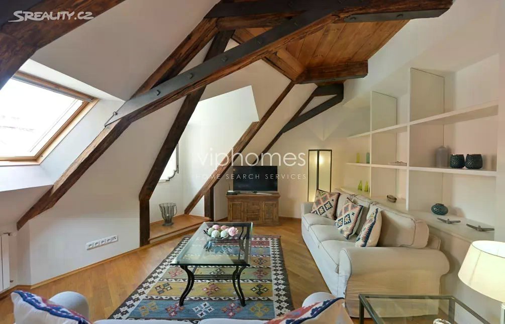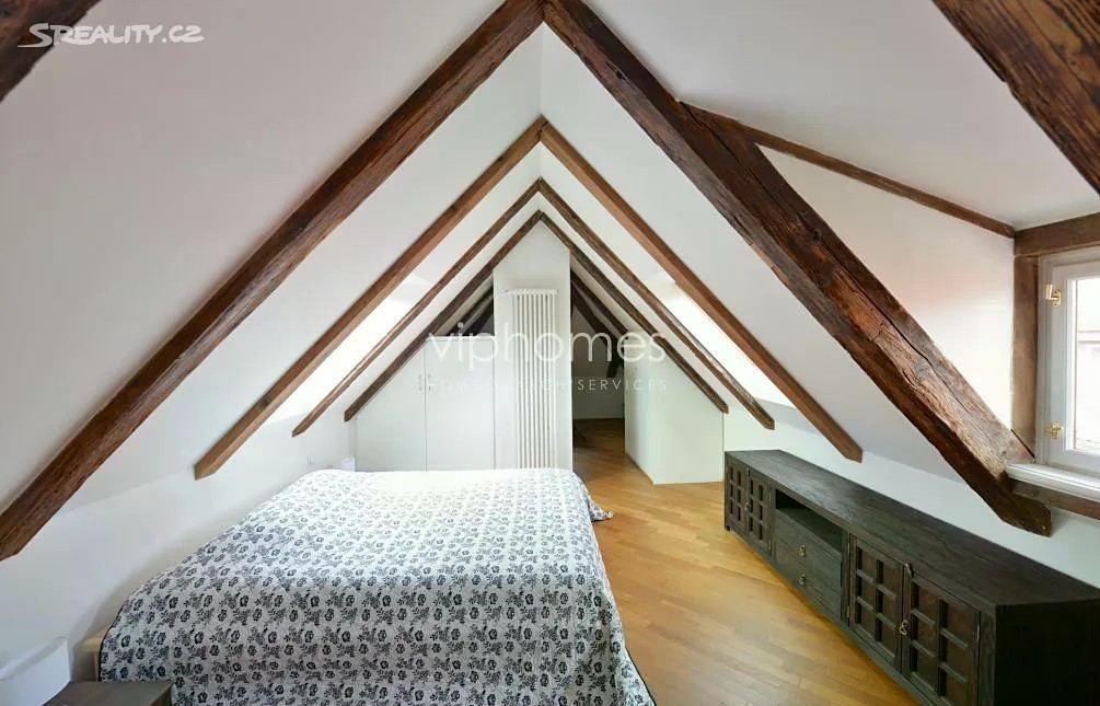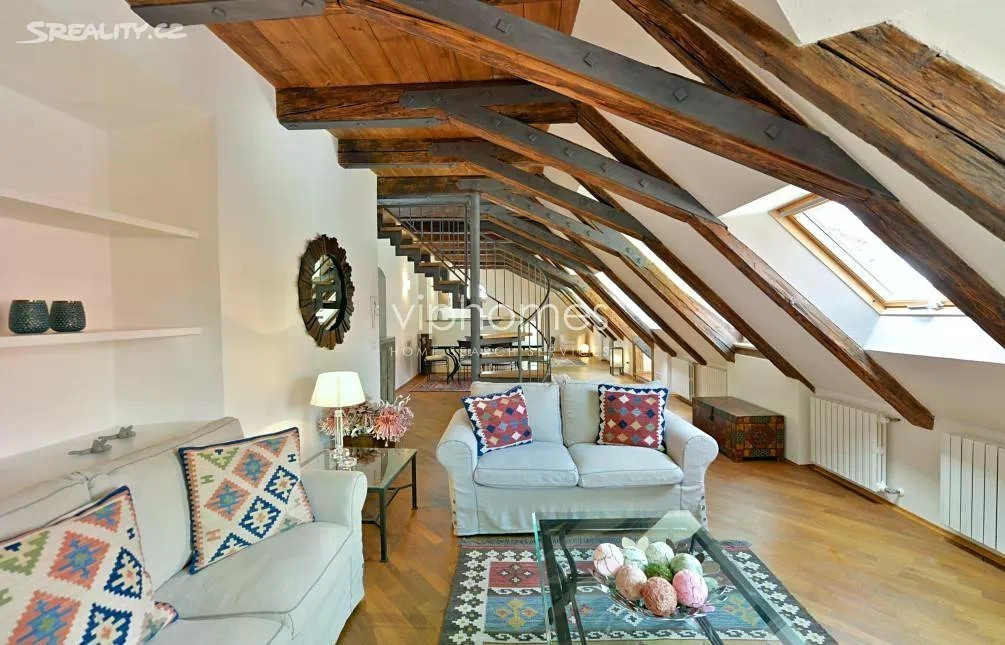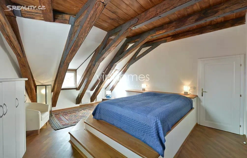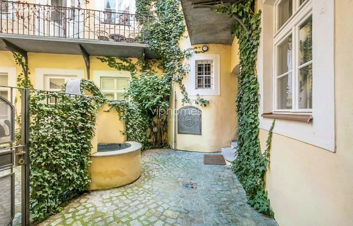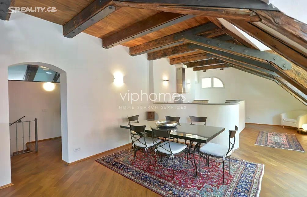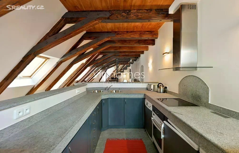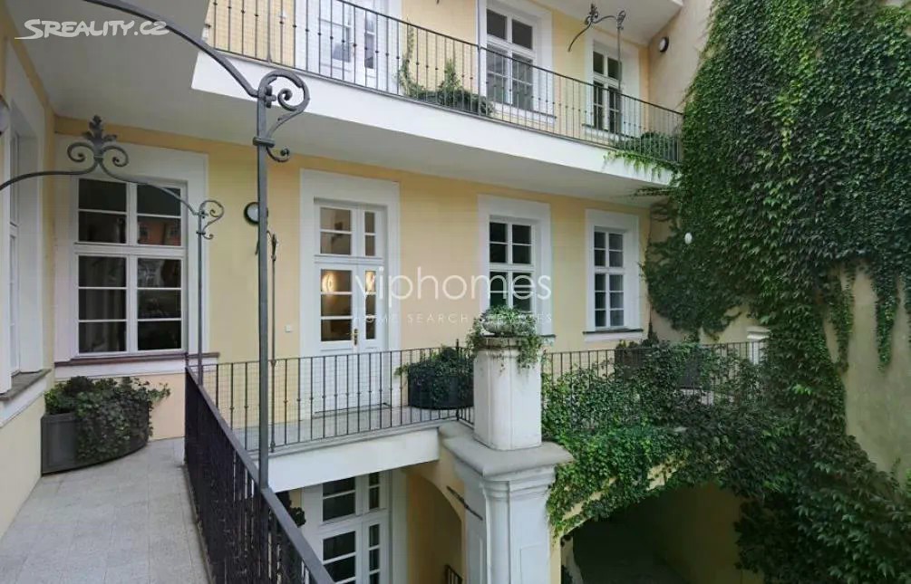 Prestižní apartmá v barokním domě o velikostí 221 m2 s vnitřním designem na velmi vysoké úrovni. V prvním patře se nachází obývací pokoj spojený s jídelním prostorem a plně vybavenou kuchyní, 2 ložnice a koupelna. Ve druhém patře je otevřený prostor o velikosti 79 m2 a druhá koupelna. Původní dveře oddělují vstupní halu od obývacího pokoje a jídelny s originální stropní malbou. Dva vchody: první přímo z výtahu. Velká terasa na jižní straně s magickým výhledem na Pražský hrad a Petřín. Parketové podlahy, italský keramický obklad, granit, fitness centrum. K dispozici satelitní programy pračka/sušička, myčka na nádobí, pevná linka, připojení k internetu. V nájemném nejsou zahrnuty energie a služby. Komplex 4 historických budov se nachází v samém srdci Malé Strany s terasami, zahradami a dvorními prostranstvími s kašnou a zelení. Tento komplex vznikal postupně v průběhu staletí v období románském, gotickém, renesance, baroka, klasicismu i v moderní éře. Díky citlivé, pečlivé a jednotné rekonstrukci té nejvyšší úrovně, se z tohoto domu stalo místo, které si podrželo svou historickou identitu a přitom je komfortní a okouzlující zároveň. Výjimečnost této nemovitosti je dána atraktivní lokalitou, (na Malé Straně, avšak na samostatném, tichém a jedinečném místě mezi Vlašskou ulicí a zelení petřínského parku), v blízkosti několika významných zastupitelských úřadů, chrámu sv. Mikuláše, Karlova mostu a Pražského hradu. V okolí naleznete veřejná parkoviště, autobusovou zastávku, stanici metra, prodejny potravin, kavárny, hospůdky, restaurace, koncertní síně, jazzové bary, obchody se starožitnostmi. Měsíční nájemné 75 000 Kč / 3 146 EUR Zálohové poplatky za služby a vodu 5.400 Kč / měsíc. Energie se hradí zvlášť.