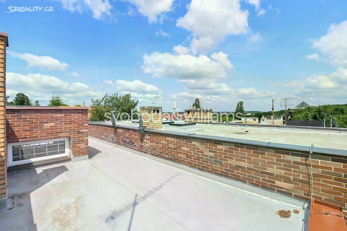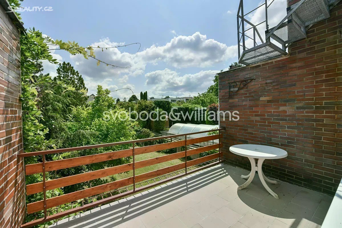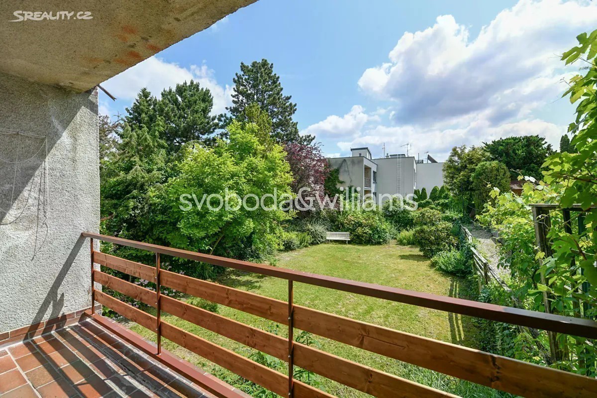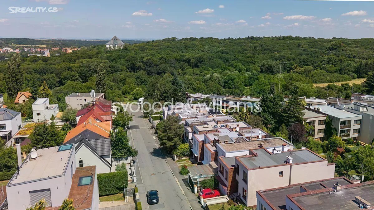 Řadový rodinný dům s garáží, rovinatou zahradou a výhledem na letohrádek Hvězda je součástí poklidné čtvrti se spoustou zeleně v Praze 6 - Břevnově blízko obory a Bílé hory. V dolní části přízemí je garáž, technická místnost, sklepní prostory a pracovna s vstupem do zahrady. V horní části přízemí se nachází 2 ložnice, z toho jedna s lodžií, koupelna a samostatná toaleta. V patře je obývací pokoj s krbem a lodžií, kuchyně s jídelnou a chodba. V nejvyšší úrovni jsou umístěny 2 ložnice, koupelna a toaleta. Z terasy u jedné ložnice vede schodiště na střechu s plochou pro slunění, odkud je nerušený výhled na ikonickou renesanční stavbu letohrádku Hvězda. Cihlový dům z r. 1981 je udržovaný, avšak vhodný ke kompletní rekonstrukci, možná je také úprava dispozičního uspořádání. Okna jsou plastová, vytápění řeší nový plynový kotel. Východně orientovaná zahrada je zatravněná, rostou na ní solitérní keře a stromy, díky své velikosti je zahrada nenáročná na údržbu. Klidná zelená lokalita je ideální pro rodinné bydlení, blízká obora Hvězda nabízí možnost příjemných procházek, venčení i sportu. V pěším dosahu bez nutnosti přecházení hlavní ulice je mateřská a základní škola, sportoviště s tenisovými kurty nebo dětské hřiště, nedaleko jsou supermarkety i hobbymarket. Asi 5 minut chůze je vzdálena tramvajová a autobusová zastávka, autem se lze rychle napojit na Pražský okruh i dojet na letiště. Celková užitná plocha 250 m2 (z toho 21 m2 garáž a terasy/lodžie 31 m2 ), zastavěná plocha 173 m2, zahrada 155 m2, pozemek 328 m2.