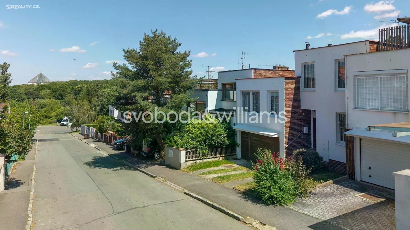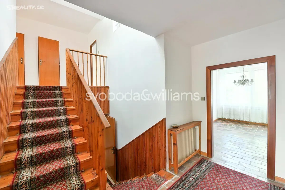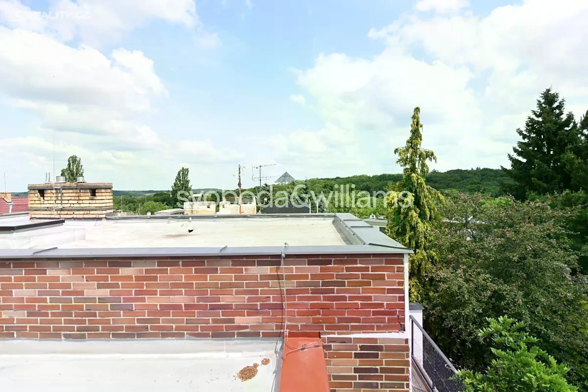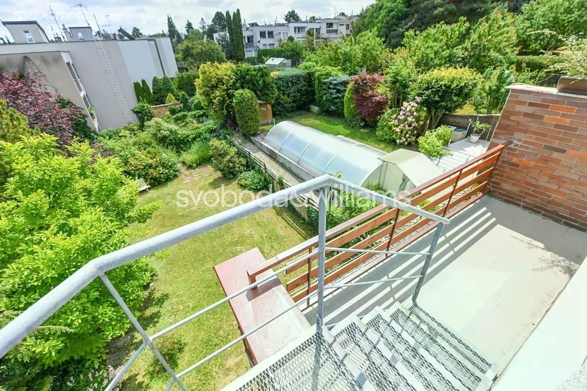 Řadový rodinný dům s garáží, rovinatou zahradou a výhledem na letohrádek Hvězda je součástí poklidné čtvrti se spoustou zeleně v Praze 6 - Břevnově blízko obory a Bílé hory. V dolní části přízemí je garáž, technická místnost, sklepní prostory a pracovna s vstupem do zahrady. V horní části přízemí se nachází 2 ložnice, z toho jedna s lodžií, koupelna a samostatná toaleta. V patře je obývací pokoj s krbem a lodžií, kuchyně s jídelnou a chodba. V nejvyšší úrovni jsou umístěny 2 ložnice, koupelna a toaleta. Z terasy u jedné ložnice vede schodiště na střechu s plochou pro slunění, odkud je nerušený výhled na ikonickou renesanční stavbu letohrádku Hvězda. Cihlový dům z r. 1981 je udržovaný, avšak vhodný ke kompletní rekonstrukci, možná je také úprava dispozičního uspořádání. Okna jsou plastová, vytápění řeší nový plynový kotel. Východně orientovaná zahrada je zatravněná, rostou na ní solitérní keře a stromy, díky své velikosti je zahrada nenáročná na údržbu. Klidná zelená lokalita je ideální pro rodinné bydlení, blízká obora Hvězda nabízí možnost příjemných procházek, venčení i sportu. V pěším dosahu bez nutnosti přecházení hlavní ulice je mateřská a základní škola, sportoviště s tenisovými kurty nebo dětské hřiště, nedaleko jsou supermarkety i hobbymarket. Asi 5 minut chůze je vzdálena tramvajová a autobusová zastávka, autem se lze rychle napojit na Pražský okruh i dojet na letiště. Celková užitná plocha 250 m2 (z toho 21 m2 garáž a terasy/lodžie 31 m2 ), zastavěná plocha 173 m2, zahrada 155 m2, pozemek 328 m2.