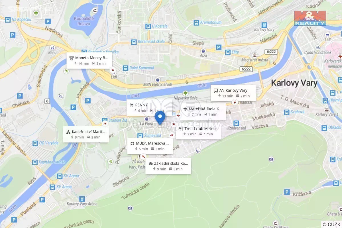 Poloha na mapě, užitečná místa a trasy