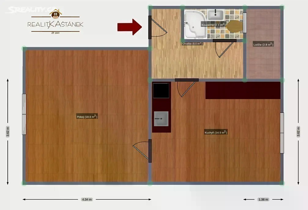 Prakticky řešený byt 2+kk s lodžií v atraktivní lokalitě, ul. Mlýnská, Liberec - centrum. Dobře udržovaný byt o velikosti 43 m2 umístěný ve 3. np. cihlového činžovního domu. Bytová jednotka je situována do klidného dvora s krásným výhledem do zeleně. Nespornou výhodou je dostatek úložných prostor - k bytu náleží sklepní kóje v suterénu domu, k užívání je rovněž společná půda. Vytápění: plynové gamaty + el. akumulační panel. Jednotka je v osobním vlastnictví. Vybavení bytu: plastová okna, žaluzie, garnýže, plovoucí podlahy. Kuchyň: kuchyňská linka, kombinovaný sporák, digestoř. Kuchyň disponuje praktickým prostorem pro jídelní stůl. Koupelna s oknem na přirozené odvětrání: sprchový kout, wc, bojler. Výborná poloha nemovitosti vůči centru města. Kompletní občanská vybavenost, centrální dopravní terminál Fugnerova, OC Forum, Lidl 2 min. od domu. Liberecká přehrada v docházkové vzdálenosti. Cena: 3.190.000,- Kč. Doporučení pro sjednání PROHLÍDKY: Do e-mailu adresovanému kanceláři napište Vaše jméno, telefonní a e-mailový kontakt. Nezapomeňte na identifikaci nemovitosti - adresa popř. číslo zakázky. S konkrétním termínem prohlídky se Vám co nejdříve ozveme.