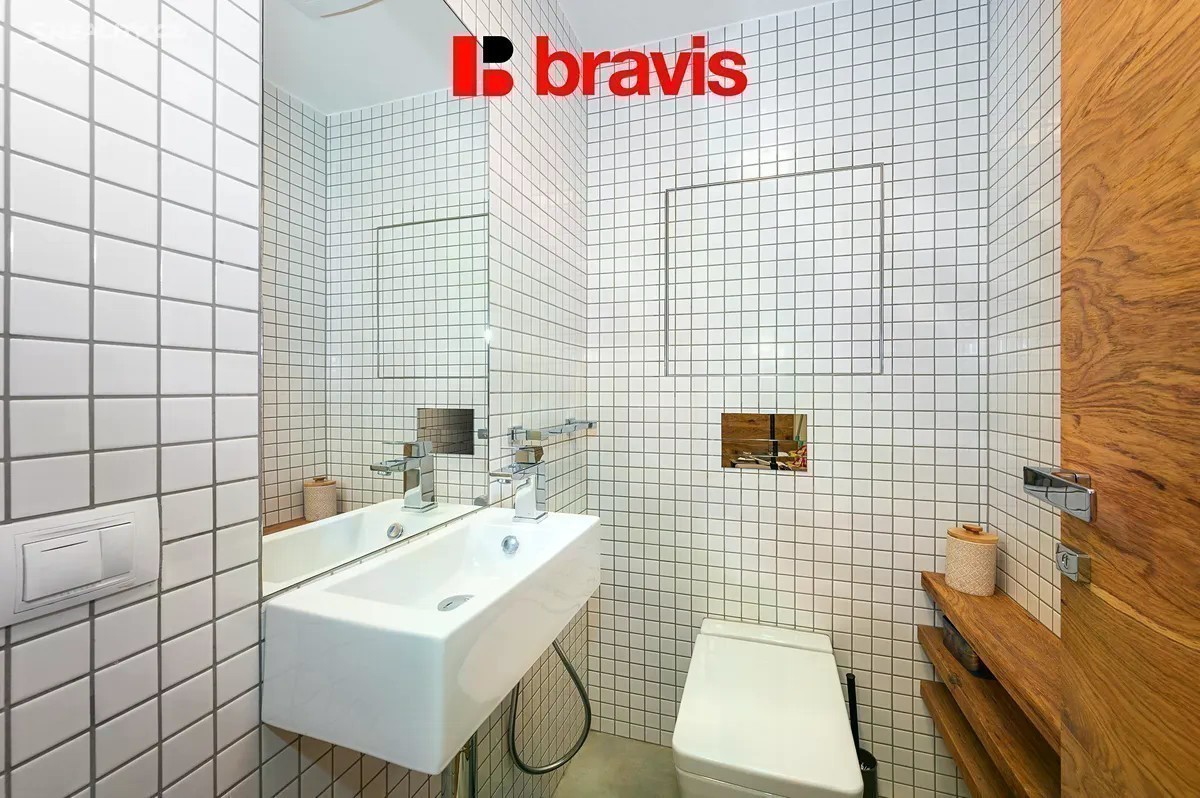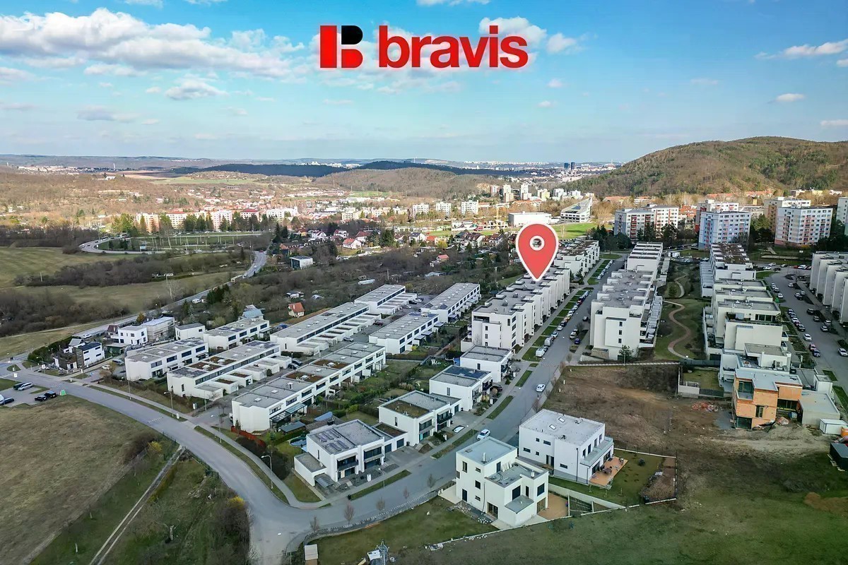 Prodej přímo od majitele s využitím právních služeb AK specializované na reality. Stavba moderního domu byla dokončena v roce 2016. Je součástí rezidenčního bydlení Panorama. Estetika vybavení je subjektivní, nicméně věřím, že se podařilo byt dokončit v nadčasovém stylu. Byt se nachází v přízemí, na velice klidné ulici Nad Přehradou, poblíž Brněnské přehrady. Kuchyňský kout je vybaven kvalitní kuchyňskou linkou na míru (od firmy GABON), s masivní dubovou pracovní deskou, včetně úsporných spotřebičů, vyšší řady od BOSCH. Obývací část je propojená prosklenou stěnou na terasu, což opticky zvětšuje prostor a zároveň je i v tomto pokoji dokonalé soukromí, díky výhledu přes střechy rodinných domů. Všechny zdi sousedící s vedlejšími byty mají akustickou předstěnu, která výrazně zlepšuje soukromí a klid. Otopný stupínek místo standardního topení zajišťuje minimalističtější vzhled / topení nekazí výhled přes prosklenou stěnu. Ložnice je vybavena vestavěnými skříněmi. Druhý pokoj je aktuálně zařízen jako dětský, nejsou v něm vestavné skříně, díky čemuž je možné jeho využití i například jako pracovní prostor. Oba pokoje mají nejdražší typ bezpečnostních žaluzií Protal s elektrickým ovládáním. V koupelně je vana, skrytá zrcadlová skříňka, otopný žebřík, pračka kombinovaná se sušičkou. Několik různých typů osvětlení. (ambientní teplé světlo, denní světlo, osvětlení zrcadla) Toaleta je v samostatné místnosti a má i umyvadlo, bidetovou sprchu. V bytě jsou skryté hliníkové zárubně dveří a skryté soklové lišty - dodávají bytu minimalistický a moderní vzhled. Bezfalcové dveře s výraznou dubovou dýhou a drahým nadčasovým kováním M&T Minimal. Příprava na domácí kino - podomítkové vedení měděných kabelů pro až 4x2 audiokanály (dolby Atmos). V ložnici, na WC a v koupelně je knihovna / police / podumyvadlová deska z masivních dubových fošen. Kování dveří, baterie v koupelně, na WC i v obývacím pokoji jsou všechny sjednocené: chromové, laděné do obdélníkových tvarů. Dubová podlaha, včetně náhradních balení, a dubové sokly v kuchyňském koutu. Menší velikost bytu je kompenzována 100% využitými prostory a úložnými prostory v kuchyňském koutu, předsíni i ložnici až ke stropu. Všechny místnosti jsou samostatně přístupné. V ceně je zahrnuto i garážové stání (aktuální hodnota cca 800 tisíc), které je prakticky umístěné - přímo naproti dveřím do garážového stání. Kromě sklepu je možné pro uskladnění využívat i kolárnu. Po domluvě by bylo možné nechat k bytu i některé nevestavěné vybavení (např. postel, pračku, stůl, židle, TV / domácí kino apod.)