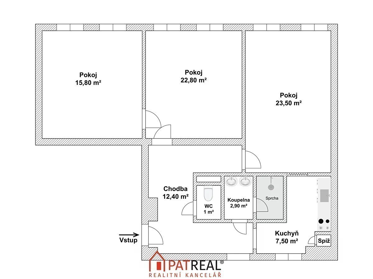 Ve výhradním zastoupení majitele nabízíme k prodeji prostorný byt o dispozici 3+1 ve vyhledávané lokalitě Brno - Černá Pole, na ulici Jugoslávská. Bytová jednotka se nachází ve zvýšeném přízemí cihlového domu. Její velkou předností jsou vysoké stropy (3 m), které interiéru dodávají vzdušnost a prostor. Dispozice je prakticky řešená - vstupní předsíň ve tvaru L nabízí vstupy do všech místností: tří neprůchozích pokojů, kuchyně, koupelny se sprchovým koutem a samostatného WC. Okna pokojů směřují do klidné jednosměrné ulice Sýpka, kuchyně a předsíň pak do tichého vnitrobloku. Byt má vlastní kombinovaný plynový kotel zajišťující vytápění i ohřev vody. Rozvody topení a elektřiny jsou provedeny v mědi. K bytu náleží prostorný sklep (9,7 m²) a k dispozici je také společný dvorek vhodný k posezení či grilování. Dispozice bytu: Pokoj: 23,50 m² Pokoj: 22,80 m² Pokoj: 15,80 m² Kuchyně: 7,50 m² Koupelna: 2,90 m² WC: 1,00 m² Předsíň: 12,40 m² Sklep: 9,70 m² Lokalita: Ulice Jugoslávská nabízí výbornou dopravní dostupnost - zastávka tramvaje je přímo před domem. Do centra města se dostanete během několika minut. V okolí je veškerá občanská vybavenost - obchody, restaurace, školy, školky i zdravotnická zařízení. Financování: S financováním Vám rádi pomůžeme - hypoteční úvěr Vám zdarma zprostředkujeme. Pro více informací nebo sjednání prohlídky kontaktujte makléře.