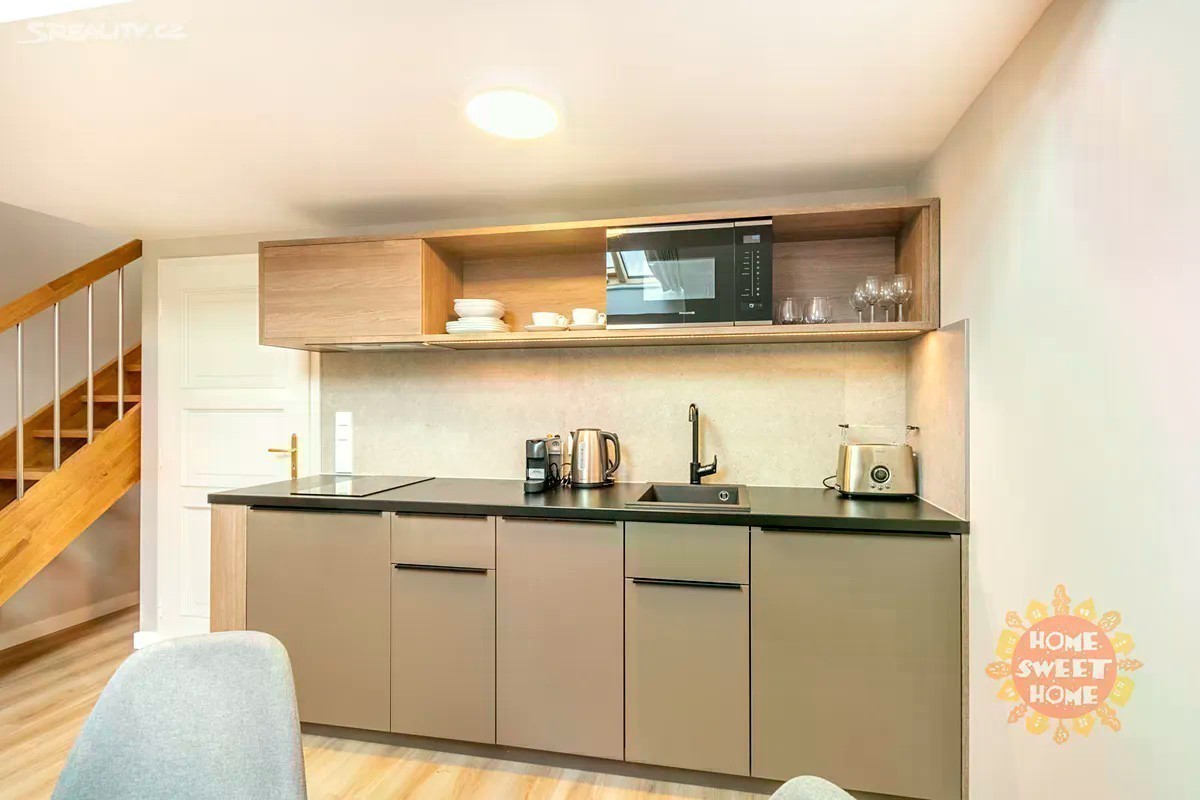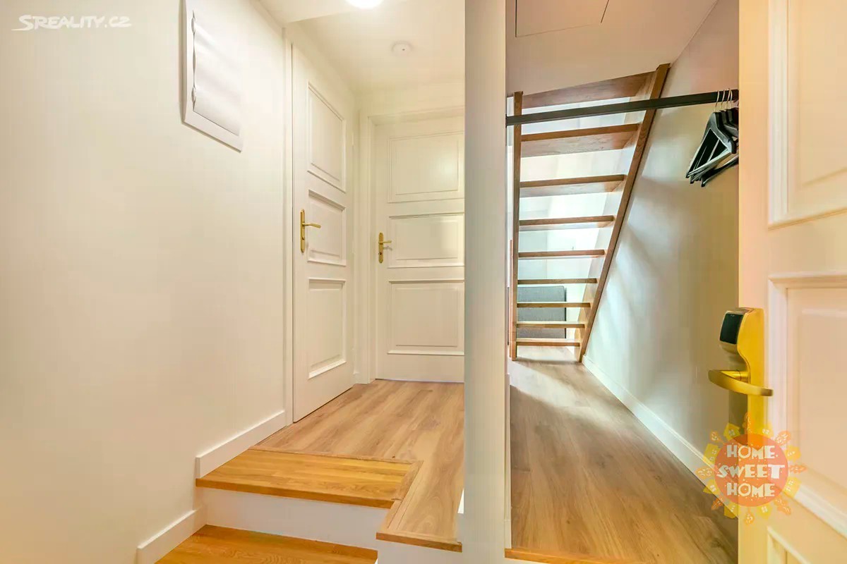 Moderní zařízený mezonet 2+kk po kompletní rekonstrukci o celkové výměře 37,5m2 se nachází v pátém a šestém patře cihlového domu s výtahem v nově zrekonstruovaném domě z roku 2022 v ulici Krakovská, Nové Město. Bydlení se nachází ve velice vyhledávané lokalitě a to cca 100 metrů od Václavského náměstí. Byt sestává z obývacího pokoje s vybavenou kuchyňskou linkou, ložnice a koupelny se sprchovým koutem, toaletou a vlastní pračkou. Součástí domu je recepce a prádelna s pračkami a sušičkami. V ceně poplatků je zahrnuta energie, vysokorychlostní Wi-Fi, 68 televizních kanálů, svoz odpadu, úklid společných prostor, recepce. Byt je také vybaven klimatizační jednotkou. Možnost pravidelného úklidu a výměny ložního prádla za jednorázový poplatek. Výborná lokalita v centru. Dům je v pěší vzdálenosti na stanici metra "Muzeum" a "Můstek" nebo tramvajovou zastávku "Václavské náměstí", výborné napojení na Městský okruh. V samém srdci české metropole naleznete mnoho kulturního vyžití: Národní muzeum, Státní Opera, Kino Lucerna, menší divadla jako Studio Dva a Rokoko. Mimo jiné je zde mnoho kaváren, bister, restaurací, klubů, obchodů, služby, fitness, a další. Možnost i krátkodobého pronájmu od 3 měsíců a déle. Pro bližší informace neváhejte kontaktovat makléře. K dispozici od září.
