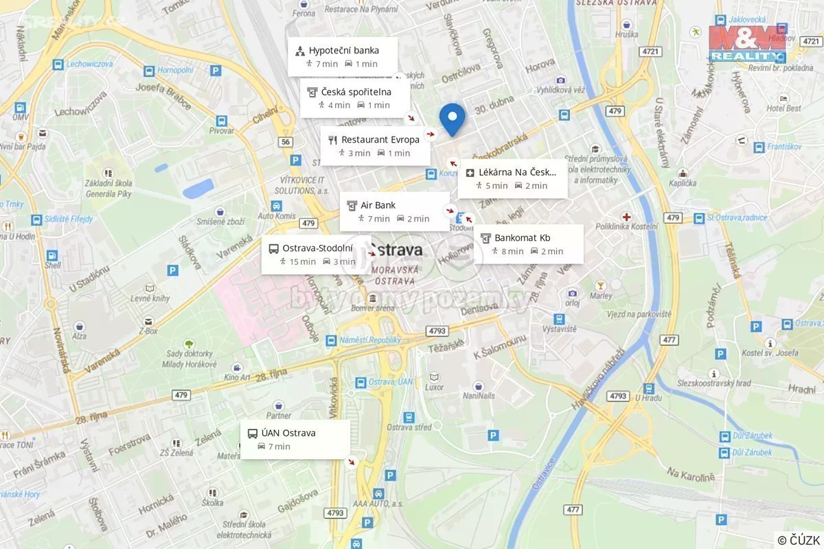 Nabízíme k pronájmu pavlačový byt 1+1 s bezbariérovým přístupem a možností parkování v uzavřeném dvoře. Kromě pračky a TV je byt kompletně vybavený. (Po dohodě možno zajistit). Vytápění bytu a ohřev vody je zajištěno plynovým kotlem a elektrickým podlahovým topením v koupelně a wc s termostatem a měřidlem okolní teploty. Příjemná orientace bytu, kdy světlo postupně putuje bytem celý den. Východ slunce u postele a západ na pavlači. K bytu náleží sklepní kóje. Vlastní parkovací místo ve dvoře je vedle výtahu, kdy vjezd je řešen přes dálkově ovládanou bránu za poplatek 1500 Kč/měs. Nájemné ve výši: 15 000,- Kč + 3 000,- energie. Kauce 45 000,- Kč Byt se nachází v žádané lokalitě na ulici Veleslavínova v centru Ostravy. V blízké dostupnosti MHD, Komenského sady, lékárna s poliklinikou a jiné. Rezervujte si svůj čas prohlídky. Pro více informací volejte makléře.