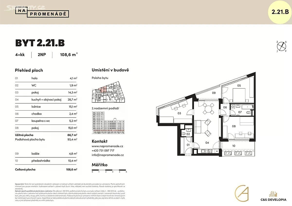 Hledáte moderní bydlení v dynamicky se rozvíjející lokalitě Brna, která nabídne skvělou dostupnost do centra i kompletní občanskou vybavenost? Nebo uvažujete o atraktivní investici? Pak vás jistě zaujme možnost pořídit si nový byt v rámci projektu Na Promenádě, který vzniká v brněnské čtvrti Trnitá - jen pár minut chůze od budoucího nového hlavního nádraží! Tento projekt spojuje moderní architekturu, vysoký standard provedení a výjimečnou polohu v jedné z nejperspektivnějších oblastí Brna. Bytová jednotka s projektovým označením 2.21B o dispozici 4+kk a velikosti 93,4m2 s předzahrádkou o velikosti 10,4m2 se nachází ve 2. nadzemním podlaží jednoho z elegantních bytových domů projektu. Dokončení projektu je plánováno na 3. čtvrtletí roku 2027. Bytové domy budou postaveny jako energeticky úsporné. Součástí standardu jsou trojitá izolační skla, která zajistí skvělou tepelnou i zvukovou izolaci a tím i maximální pocit klidu a soukromí. Byty jsou ideální volbou pro jednotlivce, páry i rodiny, které ocení funkční a prostorné dispozice, velkoformátová okna zajišťující dostatek denního světla a krásné výhledy na město nebo do klidného vnitrobloku. Většina bytů nabízí také balkon, lodžii nebo terasu, které poskytují prostor pro relaxaci. Samozřejmostí je sklepní kóje a možnost dokoupení parkovacího stání. Cena parkovacího stání je 550.000,- Kč bez DPH. Cena invalidního parkovacího stání je 650.000,- Kč bez DPH. Lokalita Brno-Trnitá prochází zásadní modernizací a stává se jedním z nejatraktivnějších míst pro život i investice v Brně. V těsné blízkosti projektu vznikne nová městská promenáda podél řeky Svratky, která propojí centrum města s novým hlavním nádražím a nabídne krásné místo pro procházky, cyklistiku i odpočinek u vody. Díky poloze jen pár minut od současného centra Brna a hlavního vlakového nádraží se z projektu stává nejen perfektní místo pro bydlení, ale také výjimečná investiční příležitost - poptávka po nájemním bydlení v této lokalitě dlouhodobě roste a modernizace Trnité ji dále posílí. Oblast nabízí kompletní občanskou vybavenost - v docházkové vzdálenosti se nachází obchody, restaurace, kavárny, školky, školy i sportoviště, které zajistí pohodlný a aktivní životní styl. Projekt Na Promenádě tak představuje ideální kombinaci městského života s možností relaxace v přírodě v bezprostředním okolí. O své klienty se staráme po celou dobu - od výběru ideální nemovitosti, přes zajištění financování, až po samotné předání klíčů. Pro více informací, nebo nabídku dalších bytů v rámci projektu Na Promenádě nás neváhejte kontaktovat.