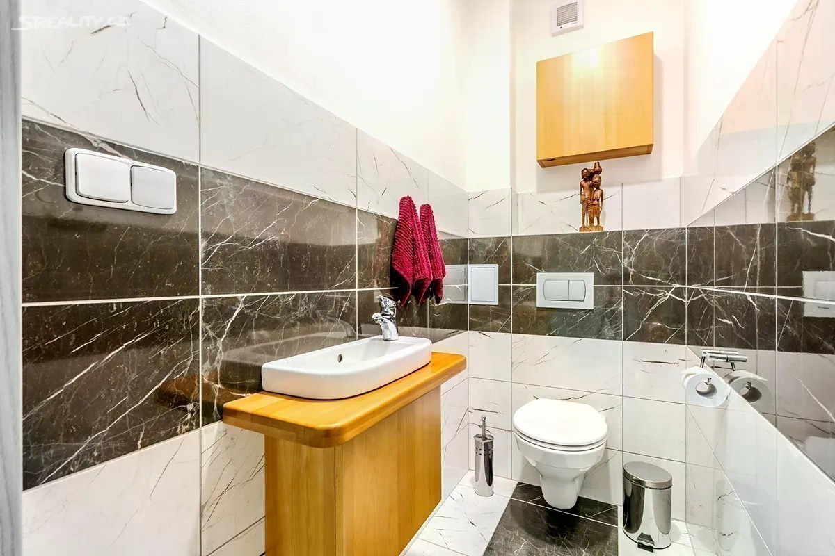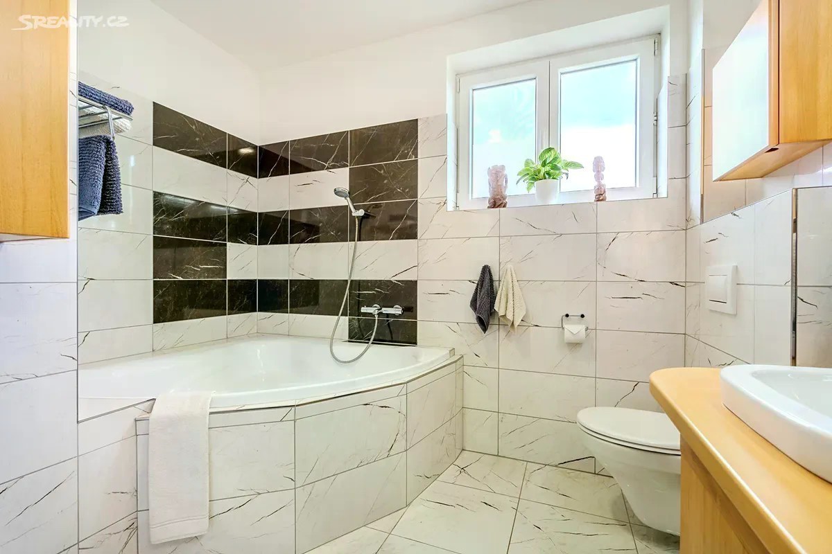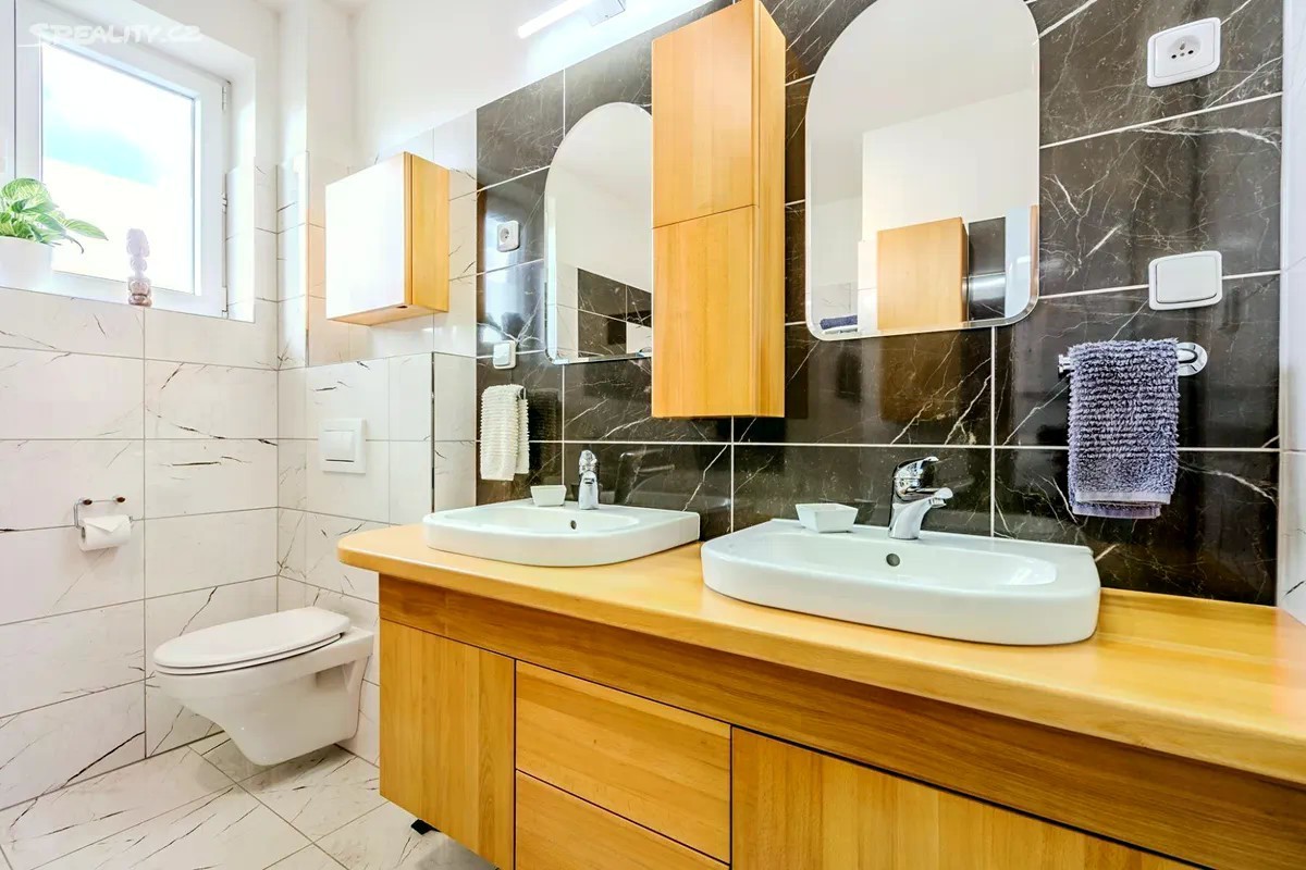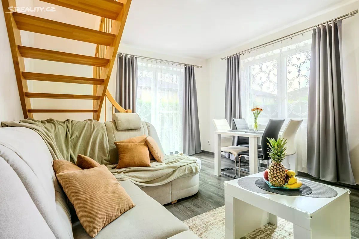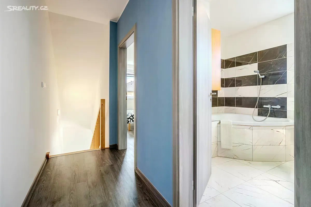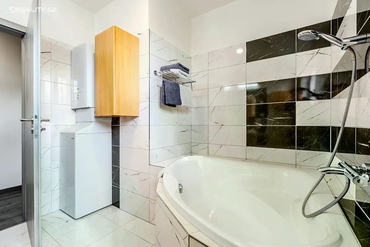 Dovolte mi představit mezonetový byt v novostavbě rodinného domu zkolaudovaného v roce 2018. Na první pohled Vás, oproti jiným bytům v místě, zaujmou prakticky řešené změny původní dispozice. Rozšířená vstupní chodba s vestavěnými skříněmi a bočním průchodem do obývací části, díky čemuž vznikla plocha pro nástěnnou TV a v horním patře prostorná koupelna s rohovou vanou a dvěma umyvadly. Velkou devizou je bezesporu již založená a vzrostlá zahrada přes celou délku parcely. Hledáte-li klidné místo, žádanou lokalitu, moderní bydlení, kvalitní provedení bytu i dobrou dopravní dostupnost, čtěte dál. Byt o dispozici 3kk a s užitnou plochou 78 m2 se nachází v rodinném domě se třemi bytovými jednotkami. K bytu náleží zahrada o velikosti 235 m2 s přístupem do ulice a dvě parkovací stání před domem, u kterých je vybudován vjezd na zahradu. V přízemí se krom vstupní chodby (6 m2) a toalety (1,8 m2) s umyvadlem a závěsným WC nachází prosvětlený obývací pokoj (23 m2) s kuchyňským koutem a francouzskými dveřmi se vstupem na terasu/zahradu. V patře jsou dvě samostatné ložnice (12 m2 a 16,5 m2) a rozšířená koupelna (6,5 m2) se závěsným WC. Veškerý nábytek byl zhotoven na míru. WC, koupelna, postel, schodiště i vstup na půdu je vyroben z bukového masivu. Kuchyňská linka značky EGGER zhotovená na míru je vybavena spotřebiči značky BOSCH - indukce, mikrovlnná trouba, digestoř, trouba, pračka, myčka, lednice. Veškerá okna s ventilací jsou kryta sítí proti hmyzu a to včetně dveří na terasu. Velmi příjemná je orientace oken na sever /jih/východ, kdy je v celém bytě opravdu hodně světla. Kromě dlažby je ve zbytku interiéru vinylová podlaha zn. EGGER a v zimních měsících určitě oceníte podlahové vytápění v celém přízemí a horní koupelně. V ložnicích jsou pak deskové radiátory. Vytápění a ohřev vody je řešen elektrokotlem značky Protherm a požadovanou teplotu v prostoru lze nastavit na nástěnném termostatu. K bytu náleží z venku přístupná komora (4 m2) např. pro jízdní kola, pneu, zahradní techniku apod. Jako další úložný prostor lze použít pochozí půdu (také 4 m2). Zahrada poskytuje ideální prostor pro posezení, relaxaci, pěstování květin (zejména v jižní části, která je po většinu dne zalita sluncem), ale je tu i dost místa na pergolu, bazén, zahradní domek, a jiné. Ve střední části domu je přípojka vody pro zálivku zahrady popř. mytí auta a přípojka na 380V. Dále je zde vyveden elektrický kabel na 220V a zanořený prodlužovací kabel do zadní části zahrady pro elektrický gril či filtraci k bazénu apod. Polerady se nachází v okrese Praha - východ, 7 km od Prahy a 4 km od Brandýsa či Kostelce nad Labem. Obec s cca 800 obyvateli nabízí mateřskou školku, potraviny, pekařství, vyhlášené řeznictví, služby obecního úřadu, fotbalové i workout hřiště, hřiště pro děti a samozřejmě i hospodu, která je aktuálně v rekonstrukci. Současné náklady vychází takto: 1.000,- záloha na vodné a stočné, 4.000,- záloha na elektřinu a 1.200,- obecní svoz odpadu/osobu/rok.