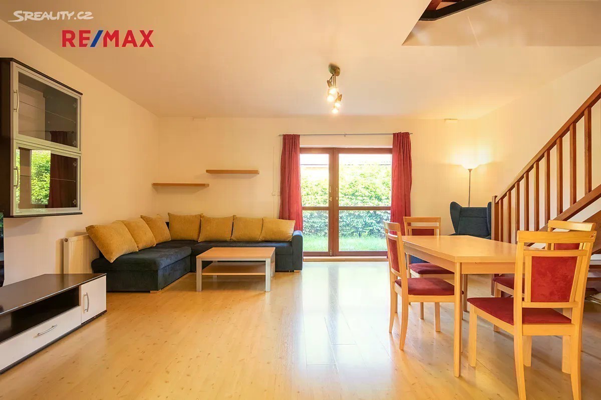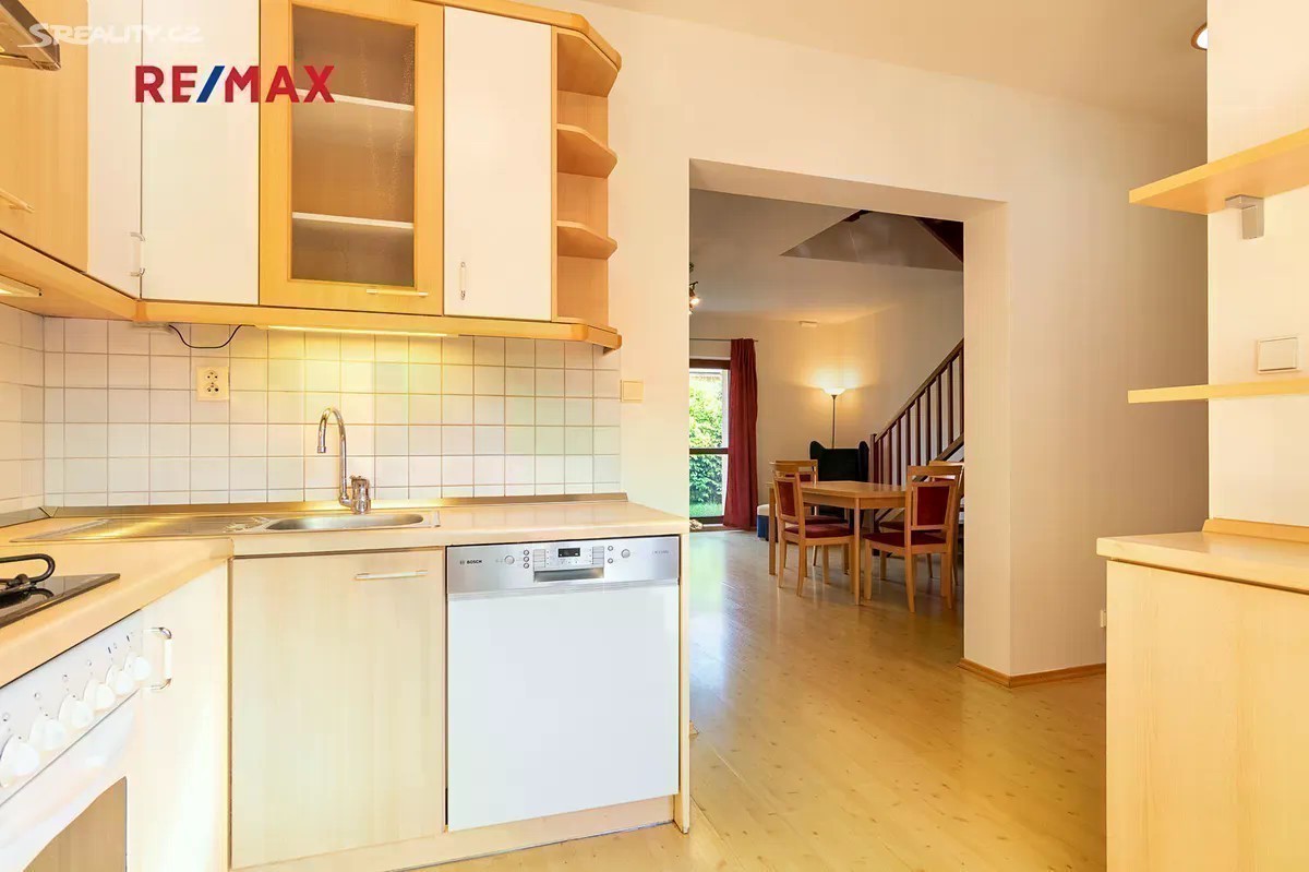 Bydlení v rodinném domě bez nutnosti strávit hodiny sekáním trávy - to si lze užívat při dlouhodobém pronájmu částečně zařízeného řadového rodinného domu v Praze 9 - Újezd nad Lesy. Dispozice 5+1 upravena na 5+kk - 110 m2. Zahrada 105m2 (49 m2 předzahrádka, 56 m2 zahrada). Garáž s el. ovládanými vraty a zadním vstupem na zahradu. Parkovací stání před vjezdem do garáže. Dům zůstává částečně zařízen - vestavěné skříně v ložnici, manželská postel s rošty, stůl se židlí pro školáka, úložné a šatní skříně pro děti. V kuchyni je nová indukční varná deska, el. trouba, vestavěná lednice s mrazničkou, myčka. Vytápění plynovým kotlem umístěným v koupelně v 1.patře. Schodiště do patra je z masivu. Vybavení zahrady: pergola k příjemnému posezení a markýza proti dopolednímu slunci. Vhodné pro rodiny s dětmi. Nekuřáky. A pouze drobná zvířátka v kleci. Kauce - 2 měsíční nájmy. Měsíční vyúčtovatelné poplatky 5.500,- zahrnují spotřebu el.energie, vodné, stočné, plyn, odvoz odpadu. Internet si aktivuje a platí nájemce sám. Lokalita: v klidné rezidenční čtvrti, v blízkosti Klánovického lesa, s veškerým zázemím v místě - škola, školka, pošta, lékař, nákupní střediska, restaurace, dětská hřiště apod. Bus 15' na metro A-Depo Hostivař nebo B-Černý Most. Vlak v Klánovicích (cca 2km). Volný od 1.11.2025. Prohlídky budou od 1.11.