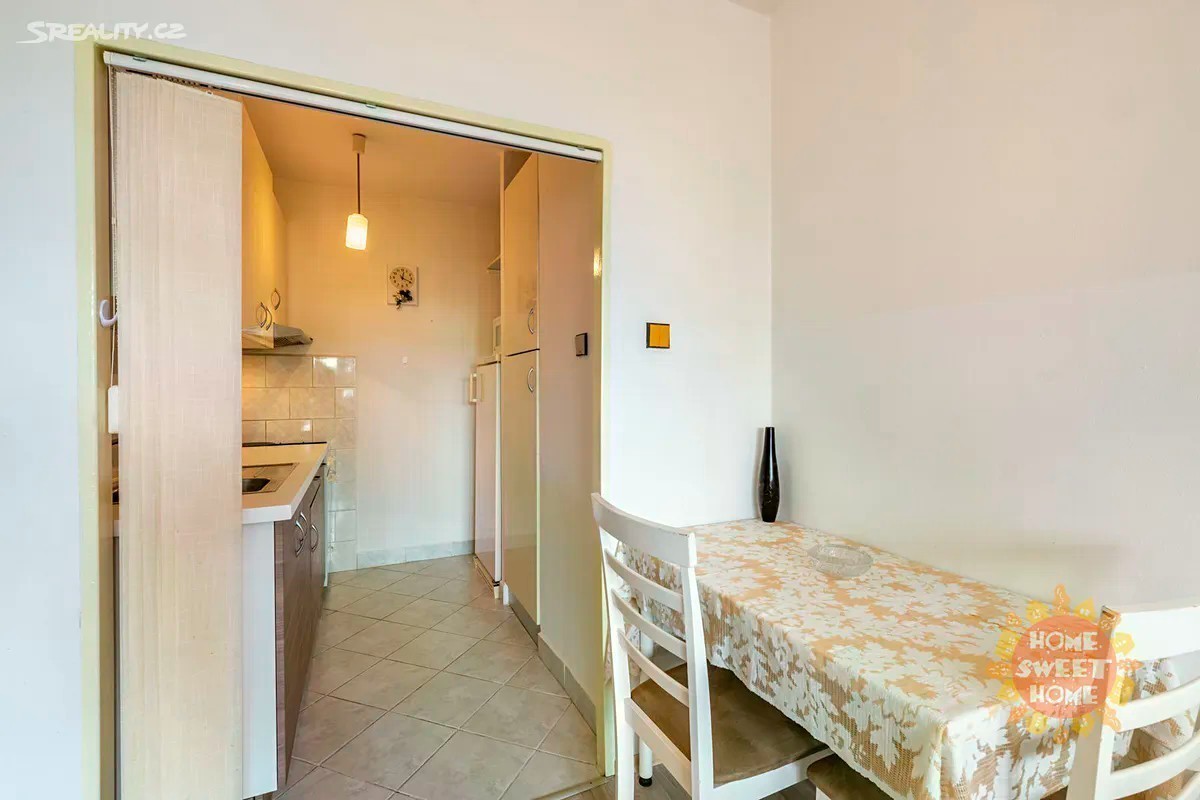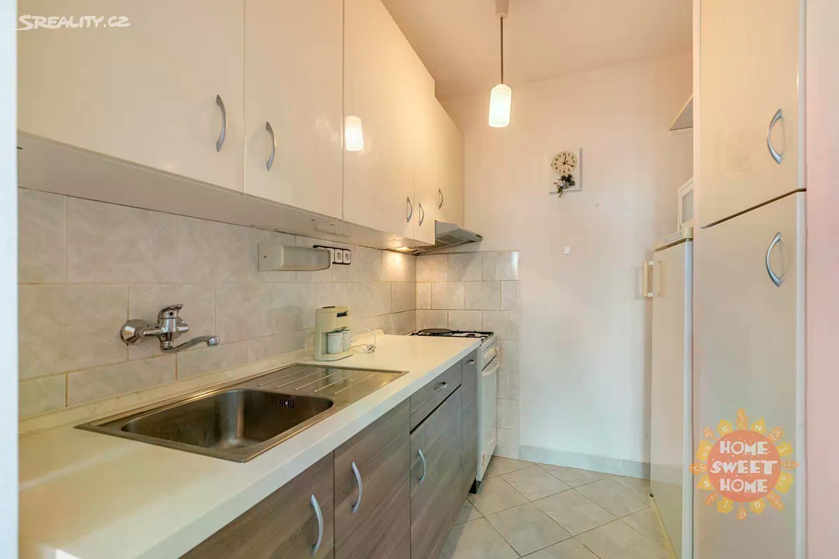 Nabízíme k pronájmu velmi pěkný byt 2+kk o celkové rozloze 42m2 se zaklenou lodžií (6m2) v šestém patře panelového domu s výtahem v ulici Plickova, Praha 4 - Háje. Byt je k dispozici zařízený a sestává ze vstupní chodby s vestavěnými skříněmi, neprůchozího pokoje, koupelny s vanou a pračkou, zvlášť toaletou, dále je zde obývací pokoj s vybaveným kuchyňským koutem (lednice, plynový sporák s elektrickou troubou, mikrovlnka) a vstupem na prosklenou lodžii s pěkným výhledem do okolí. Na podlaze je PVC a dlažba. Topení: ústřední vytápění. Jedná se o klidnou lokalitu v těsné blízkosti Hostivařské přehrady, která se nabízí k volnočasovým aktivitám. Je zde také velmi dobrá občanská vybavenost: supermarket Lidl, Tesco, banka, benzinová stanice, restaurace, ZŠ a další. Výborná dopravní dostupnost: 6 min. chůze na autobusovou zastávku "Horčičkova" nebo cca 10 chůze na stanici metra "Háje". Majitel požaduje vratnou kauci v hodnotě jednoho měsíčního nájmu. Byt je dostupný k pronájmu od 30. září 2025.