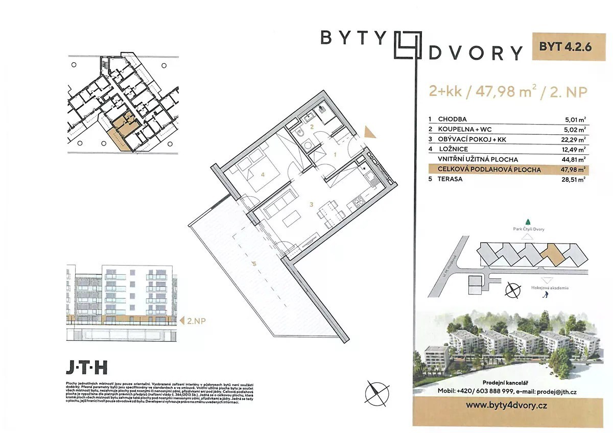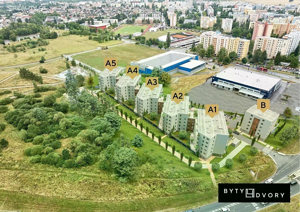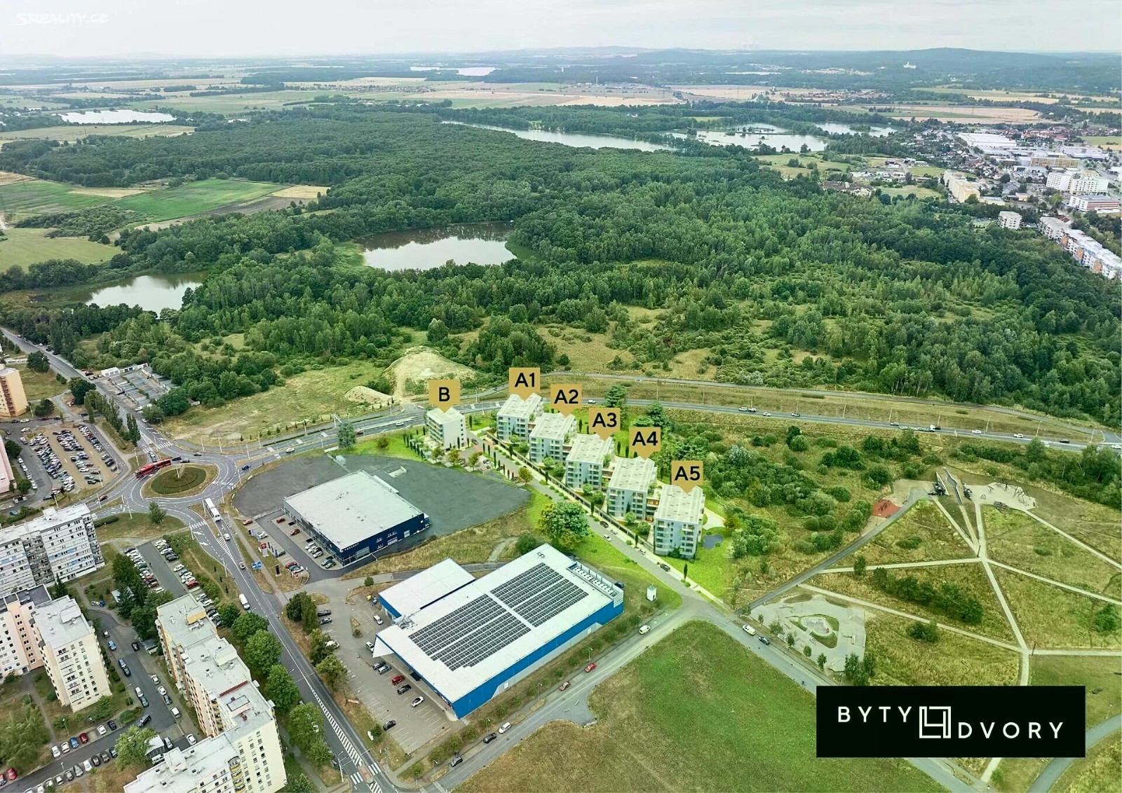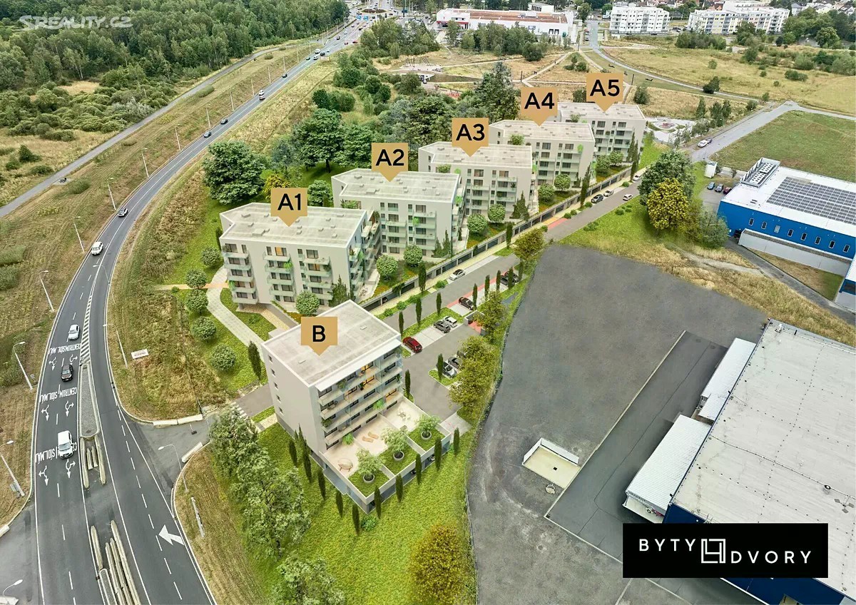 BYTY 4 DVORY - NOVÝ ZAČÁTEK VAŠEHO PŘÍBĚHU v sousedství Vrbenských rybníků. Představujeme projekt rezidenčního bydlení v Českých Budějovicích BYTY 4 DVORY. Moderní architektura, promyšlené dispozice a rozmanitá nabídka bytových jednotek. Pokud hledáte rodinné bydlení, investiční nebo startovací byt bude pro vás adresa BYTY 4 DVORY tím pravým místem. Projekt nabízí celkem 211 bytů ve dvou bytových domech. Hlavním objektem je dům A, který je rozdělen na pět sekcí a v šesti podlažích najdete 196 bytů dispozic 1+kk - 4+kk. Menším domem je objekt B a jeho součástí je 15 bytových jednotek velikosti 2+kk - 3+kk. Když mluvíme o moderním bydlení je samozřejmostí, že ke každému bytu náleží balkon nebo terasa. Působivé je propojení teras s venkovním prostorem u bytů ve 2. a 6. podlaží bytového domu A. Zaměřte se na zdánlivě ustupujícímu navržení jednotlivých sekcí, které vytváří unikátní prostory. Parkování a sklepní kóje ke každému bytu se nachází v suterénu bytových domů. Nabízený byt v této inzerci je dispozice 2 + kk o výměře 50,18 m2 a jeho příslušenstvím je luxusní terasa 21,62 m2, která je unikátně propojena s venkovním prostorem plného zeleně. Byt č. 2.2.2 se nachází ve 2. NP šestipodlažního bytového domu s výtahem BYTY 4 DVORY, sekce 2. Předpokládaný termín dokončení stavby je prosinec 2025. Dispoziční řešení bytu: ze vstupní chodby (5,16 m2) je přístupná koupelna (5,48 m2). Vstupní chodba umožňuje umístnění vestavěných skříní. Z chodby je dále přístupný obytný prostor (24,02 m2) s prakticky řešeným kuchyňským koutem. Obytný prostor je krásně prosvětlen velkou okenní sestavou. Ložnice (12,49 m2) je přístupná z obytného prostoru. Na terasu (21,62 m2) je přímý vstup jak z obytného prostoru tak z ložnice. Celý byt je orientován na východ. Standardní vybavení bytu: kvalitní zařizovací předměty koupelny (sprchový kout, umyvadlo, toaleta, přípojka pro pračku), obklady, dlažby, vnitřní dveře a podlahové krytiny. Stavební a technické řešení nízkoenergetického bytového domu zaručuje úsporou nákladů na vytápění oproti běžnému bytu, což snižuje měsíční náklady zejména do budoucna. K bytu lze dokoupit sklepní kóji, vnitřní nebo venkovní parkovací stání. Lokalita pro výstavbu projektu BYTY 4 DVORY se rozkládá západní straně Českých Budějovic v těsném sousedství přírodní rezervace Vrbenské rybníky. V bezprostřední blízkosti se nachází volnočasový park 4 Dvory, supermarket Kaufland a veškerá další občanská vybavenost. Lokalita je velmi dobře dostupná městskou hromadnou dopravou i automobilem. Zastávky MHD se nachází v blízkosti bytových domů. Občanská vybavenost v docházkové vzdálenosti: základní škola E. Destinové, O. Nedbala, mateřská škola E. Destinové, Větrná, lékaři, pošta, restaurace, multikino. Dopravní dostupnost: MHD linky č. 5, 8, autem 5 minut z centra.