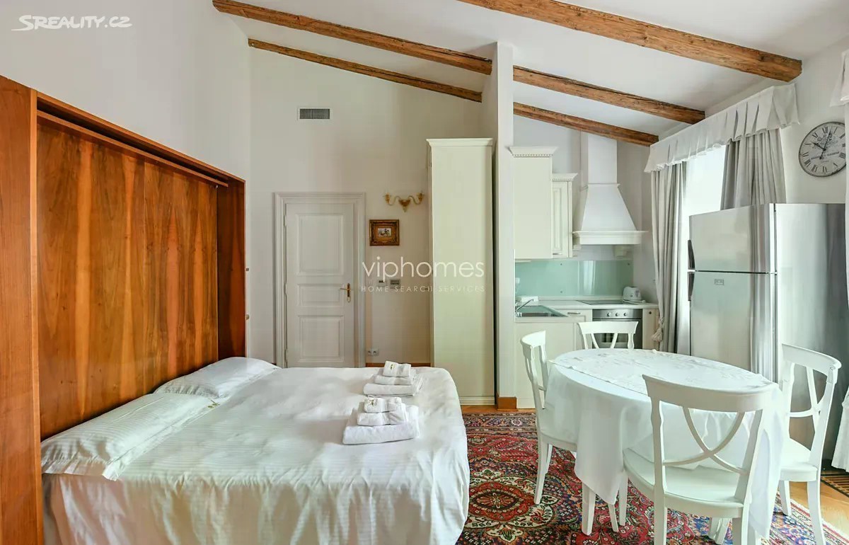 Rezidence Italská je klidnou a komfortní oázou bydlení uprostřed velkoměsta. Kompletně zrekonstruovaná novorenesanční budova na prestižní vinohradské adrese disponuje velkým venkovním bazénem, krásně upravenou společnou zahradou a recepční službou. Klimatizovaný půdní byt 1kk situován ve 3. patře (4. nadzemní podlaží)domu z konce 19. století nabízí vysokou kvalitu bydlení v exkluzivní čtvrti královských Vinohrad. Jen pár kroků Vás dělí od luxusních nákupních galerií, divadel, koncertních sálů a vynikajících restaurací. Stanice tramvají a metra A Náměstí míru 3 min. od domu. Ideální poloha v dosahu centra i nedalekých Riegrových sadů. Klimatizované studio s balkonem disponuje obývacím pokojem / ložnici s plně vybaveným kuchyňským koutem a přístupem na balkon, koupelnou (vana, toaleta, bidet) a vstupní chodba. K dalšímu zařízení patří klimatizace, dřevěné podlahy, dlažba, bezpečnostní dveře, videotelefon, satelitní TV, pračka se sušičkou. Celková plocha: 49 m2 (38 m2 + balkon 11 m2) Nájem: 1 200 EUR / 29 262 CZK / měsíc Možnost zajistit garážového stání a úklid. Fixní platba / domovní služby 200 EUR / měsíc + DPH, fixní platba / spotřeba energií 250 EUR / měsíc + DPH. Parkování : Garážové stání. K dispozici ihned.