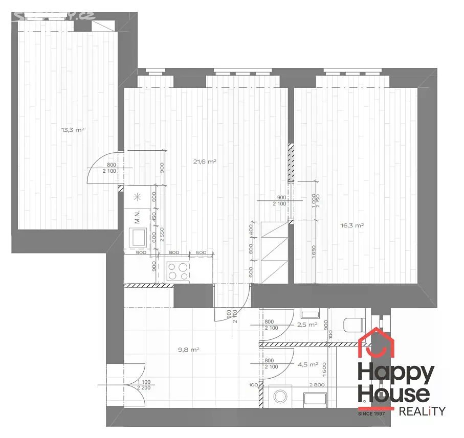 Nabízíme k pronájmu nezařízený byt 3+kk ve zvýšeném přízemí (okna 3 m nad zemí) cihlového domu s výtahem v žádané lokalitě Prahy 6 - Dejvice. Byt prošel kompletní rekonstrukcí. Dispozice bytu tvoří dva neprůchozí pokoje a mezi nimi obývací pokoj s kuchyňským koutem, byt je však nevhodný pro spolubydlení. Kuchyňský kout (rozměr 4,04x5) je vybaven kuchyňskou linkou a vestavěnými spotřebiči - lednicí s mrazákem, sklokeramickou varnou deskou, horkovzdušnou a mikrovlnnou troubou, myčkou a digestoří. Je zde okno do zahrady a klidného vnitrobloku zahrada je k využití pro všechny obyvatele domu a je zde i malé pískoviště pro děti. Pokoje jsou uzavíratelné (rozměry 3,18x5 a 2,35x5) a mají okna s výhledem do zahrady. V koupelně je sprchový kout, pračka a sušička. Toaleta je samostatně. V předsíni se nacházejí vestavěné skříně. V části bytu obývacím pokoji je možnost si umísit pohovku o rozměru až 230 cm. Na podlahách je vinylová krytina a dlažba. Okna jsou špaletová, opravená. Vytápění zajišťuje plynový kotel umístěný v chodbě. K bytu náleží sklep o velikosti 4 m². Výhled je orientován do klidného vnitrobloku. V okolí se nachází kompletní občanská vybavenost - školy, školky, obchody, restaurace, kavárny i lékárny. V pěší vzdálenosti je stanice metra, tramvají a autobusů Dejvická (asi 10 minut). Lokalita nabízí i množství zeleně a relaxačních míst - pár minut chůze od domu se nachází park Stromovka, ideální pro procházky, sport i odpočinek. V blízkosti jsou rovněž Letenské sady, Hanspaulka s vilovou čtvrtí a přírodní park Šárka vhodný k výletům i sportovním aktivitám. Poplatky se hradí zvlášť. Kauce činí 2 měsíční nájmy. Provize RK je ve výši 1 měsíčního nájmu + DPH. Energetický štítek není k dispozici, uvádí se třída G.