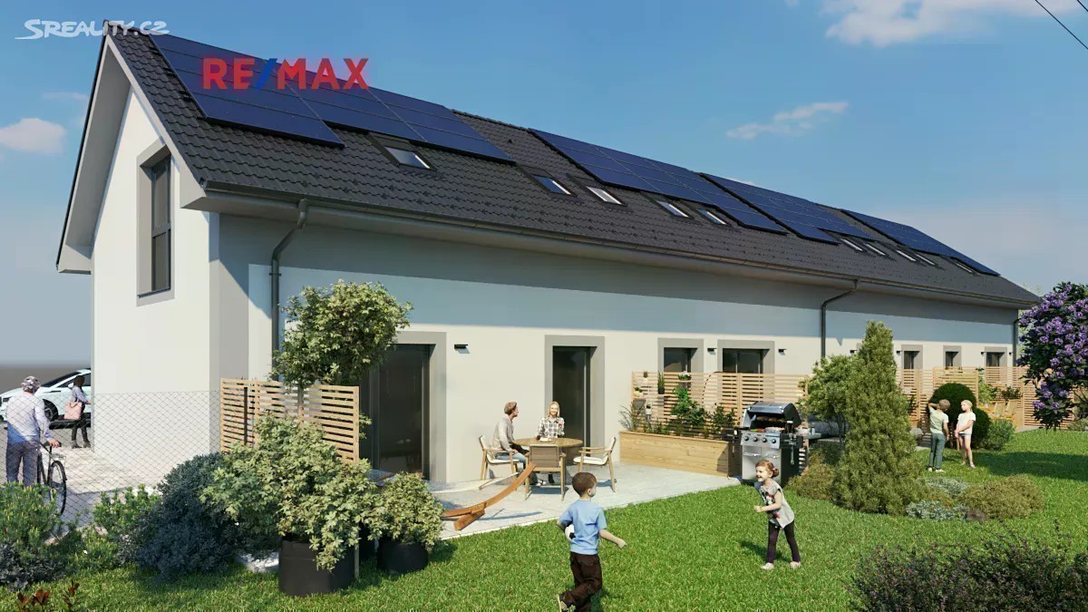 Poplatek RK platí prodávající! Nabízíme k prodeji moderně řešený mezonet o celkové ploše 103,07 m², který nabízí pohodlné bydlení s důrazem na funkčnost a je ve vzdálenosti pouze 10 - 15 minut autem od Černého Mostu. 1. NP (61,63 m²) zahrnuje vstupní chodbu, WC a otevřený obývací prostor s kuchyní, přístup na předzahrádku (cca 59m2). 2. NP (41,44 m²) disponuje prostornou ložnicí, dětským pokojem, koupelnou s WC a dvěma šatnami. Tento byt je ideální pro mladé rodiny či páry hledající kombinaci útulnosti a praktičnosti. Rezidence nabízí pouze 4 mezonetové byty, tak že si můžete užít skutečný klid a maximální soukromí. Díky promyšlenému rozložení, předzahrádkám a terasám se v každém bytě budete cítit jako doma - bez sousedů nad hlavou. Každý byt má přímí vstup na vlastní zahradu orientovanou do tiché části pozemku. Skvělé místo pro grilování, hry s dětmi nebo večerní relax. Rezidence je navržena s důrazem na úspornost a moderní technologie. Fotovoltaické panely na střeše snižují náklady a přispívají k udržitelnému životnímu stylu. Energetická třída A, kombinované tepelné čerpadlo pro topení a chlazení, vinylové podlahy, francouzská okna s trojsklem a prémiový standard v ceně. Každá předzahrádka má připojení na vodu a elektřinu. Parkovací stání, kočárkárna i moderní provedení stavby jsou samozřejmostí a jsou zahrnuté v ceně. Přijďte si přesvědčit sami! Předpokládaný termín kolaudace je do konce září 2025.