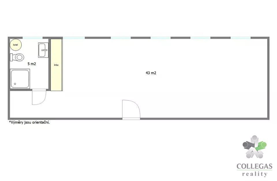 Nabízíme k pronájmu prostor v centru Brna na ulici Hybešova. Jednotka se nachází v 1. patře. Hlavní místnost je pěkně prosvětlená okny do dvora, má podlahovou plochu plochou 43 m2 a je vybavena kuchyňskou linkou. Majitel může po domluvě zajistit i lednici. Dále k jednotce náleží koupelna s WC a sprchovým koutem. Prostor je všestranný a nabízí různé možnosti využití. Aktuálně je zkolaudován jako skladovací prostor. Majitel nabízí součinnost s vyřízením případné změny využití. Nájem plus poplatky 18.000 Kč/měsíc. Vratná kauce 18.000 Kč. Volné ihned.