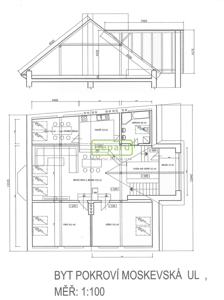 Ojedinělá příležitost v centru krajského města Ústí nad Labem. Nabízíme k prodeji půdní prostory se stavebním povolením v ulici Moskevská 1581/22, Ústí nad Labem (bytová jednotka č. 7). Tento prostor v centru Ústí nad Labem se nachází v pátém nadzemním podlaží bytového domu a představuje skvělou investiční příležitost či vlastní královské bydlení. Lze vybudovat jeden exkluzivní nadstandardní půdní byt s rozlohou dle prohlášení vlastníka 159,8 m2. Můžete si vybrat zdali budete chtít unikátní terasu a kochat se výhledem či se bez ní obejít. Doporučujeme využít služeb současné stavební firmy, která zhotovila ostatní bytové jednotky v tomto domě. Rozpočet na vyhotovení bez terasy činí 4,2 mil. Kč či s terasou ve výši 4,72 mil. Kč. Lokalita nabízí jedním slovem VŠE. Do 100 m od bytu se nachází namátkou kulturní a veřejný sál Hraničář, pošta, Billa, Teta, Alza, nespočet restaurací a obchodů. Do 700 m OC Forum (více než 100 obchodů s kinem Cinema City), divadlo, Univerzita Jana Evangelisty Purkyně s osmi fakultami, obchodní akademie a jazyková škola, magistrát, krajský úřad, banky, pojišťovny a desítky a desítky obchodů, restaurací a úřadů. V této lokalitě najdou ideální bydlení zájemci, kteří chtějí být vždy nablízku velkoměstu severu, netrávit dlouhý čas dojížděním za prací nebo pro ty, kteří hledají investiční příležitost, kapitálové zhodnocení a zároveň výnos z potencionálního pronájmu. Možností do budoucna je ovlivnit vybudování společného výtahu. V domě je nově zřízeno SVJ. Možnost přikoupit sklepní prostory. Vstup do budoucího bytu je z podesty mezi 4. a 5. N.P., součástí bytu je část schodiště mezi 4. a 5. N.P. a podesta mezi 4. a 5. N.P. Parkování možné na ulici před domem. Do budoucna možné vlastní parkovací místo u domu. Nechte se inspirovat a vytvořte si ideální prostor v srdci Ústí nad Labem. Neváhejte kontaktovat a zjistit na vlastní oči potenciál této nabídky. Uvedené výměry jsou orientační. V případě více zájemců bude nemovitost prodána nejlepší nabídce a majitel si vyhrazuje právo vybrat kupujícího na základě jím zvolených kritérií. Veškeré zveřejněné údaje obsažené v tomto inzerátu mají pouze informativní charakter a nejsou nabídkou ve smyslu § 1731 nebo § 1732 občanského zákoníku, ani se nejedná o veřejný příslib dle § 1733 občanského zákoníku.