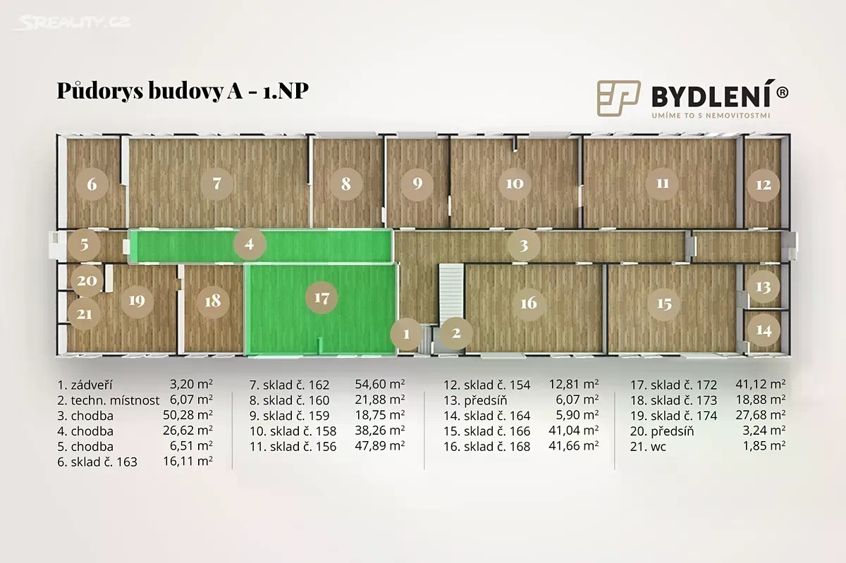 Realitní kancelář 3P Bydlení vám ve výhradním zastoupení majitele nabízí pronájem komerčních prostor v atraktivní lokalitě u centra Teplic. Areál tvoří tři samostatné budovy (A, B, C) s možností využití pro skladování, výrobu nebo kancelářské zázemí. Budova A: skladové prostory, lehká výroba, garáže pro 7 aut Budova B: kancelářské prostory po rekonstrukci, zázemí, PENB C Budova C: moderní kanceláře po kompletní rekonstrukci, zázemí, PENB B Kamerový systém, GSM brána, přístup 24/7 Vysokorychlostní internet, 230/400 V, nové plynové kotle, dostatek parkování Sklady od 1 500 Kč/měsíc + energie Kanceláře od 4 000 Kč/měsíc + energie Kauce: 2 nájmy, provize RK: 1 nájem Zaujala vás nabídka? Pro domluvení prohlídky mě kontaktujte. Těším se na setkání!